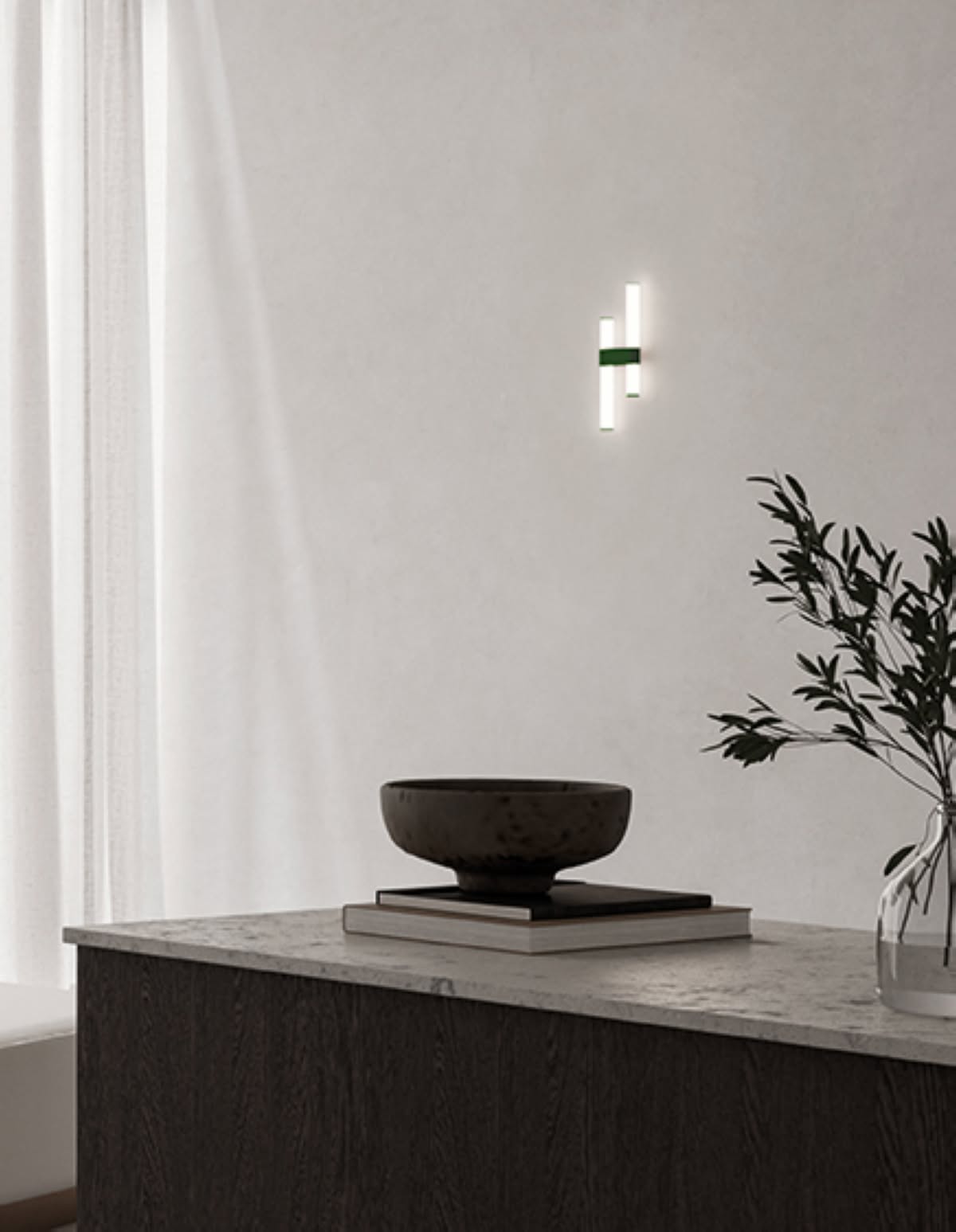 Paralela Lampada da parete è la lampada da parete della collezione omonima con sistema modulare disegnato dallo studio spagnolo Nahtrang, nasce dalla volontà di dare forma alla luce, affinché essa stessa si concretizzi in un elemento luminoso decorativo. Da qui l’idea di creare dei cilindri luminosi, in vetro borosilicato connessi tra loro da elementi in Nylon PA12, che possono svilupparsi nello spazio in modo ordinato per gravità sviluppando un dialogo visivo che diventa una sinfonia di luce. Si tratta di una nuova famiglia prodotto completa, disponibile in versione sospesa orizzontale e verticale, da tavolo, da terra e da muro, con misure differenti e cinque nuance.