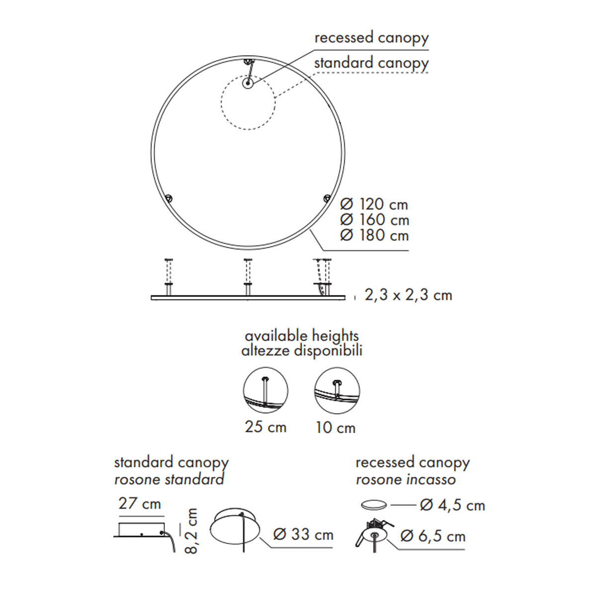 PLULX180: Ø 180 cm Standard c. 153W 2700K: 9283 lm 3000K: 10315 lm