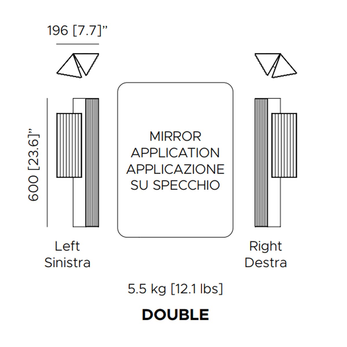 Stick Double lampada da parete di Contardi è la lampada da parete che ispirandosi alla più semplice delle forme, parte da un modulo base a sezione triangolare, un oggetto ripetuto, che permette infinite configurazioni e trasmette una forza espressiva sempre nuova. Nella versione doppia a parete, la lampada è disponibile nelle versioni: destra e sinistra. Come le altre lampade della collezione Stick, la Stick ap double è disponibile nelle finiture nickel dorato satinato e rame satinato. La collezione Stick è caratterizzata da un design minimale e interpreta l'illuminazione nella sua forma più artistica ed evocativa. Razionale ma giocoso, geometrico ma poetico, combina perfettamente l'estro creativo dei designer e il know-how tecnico all'avanguardia di Contardi.