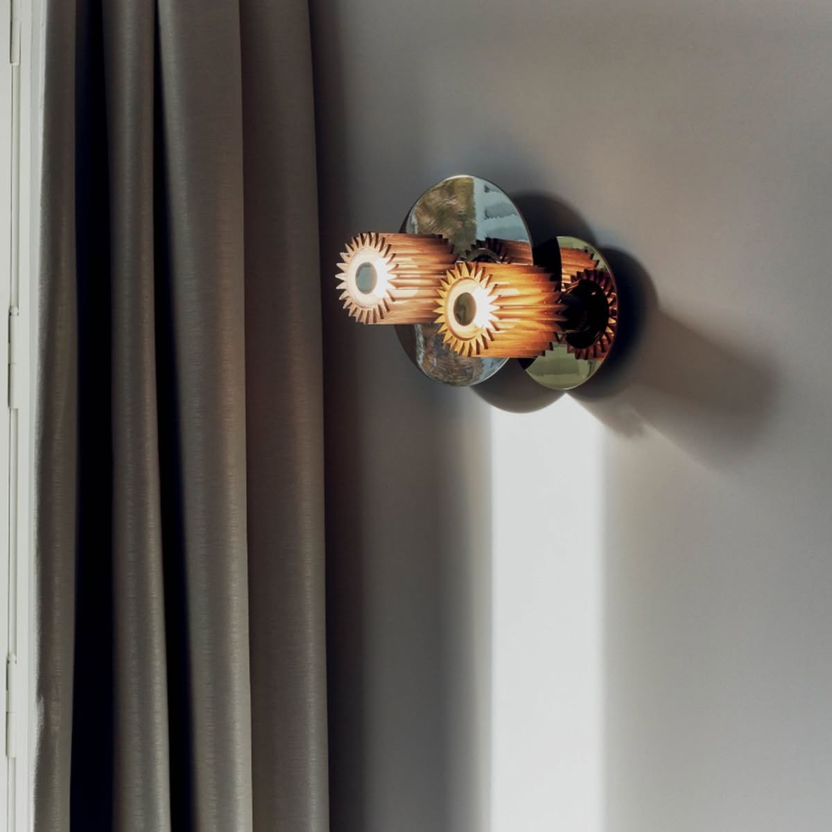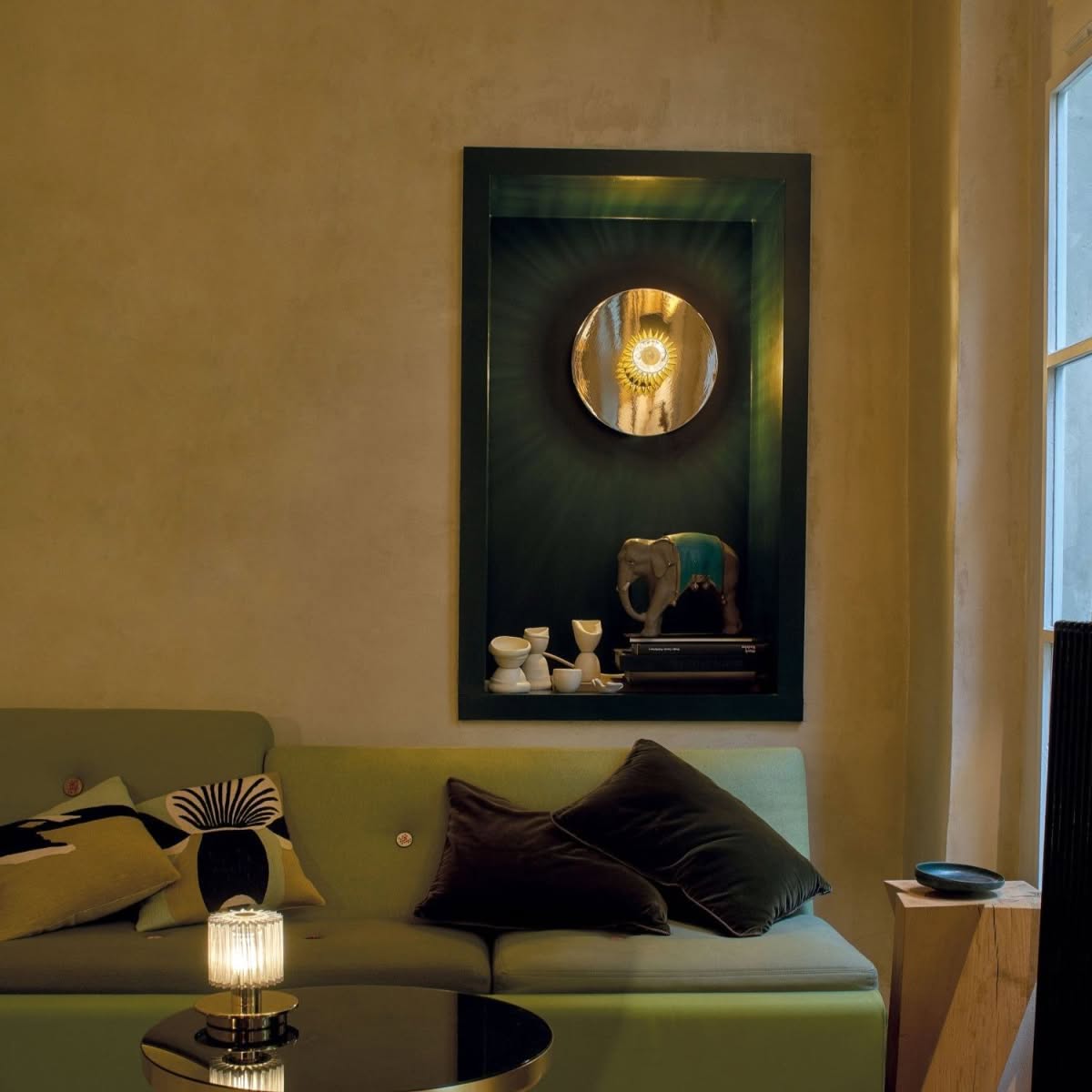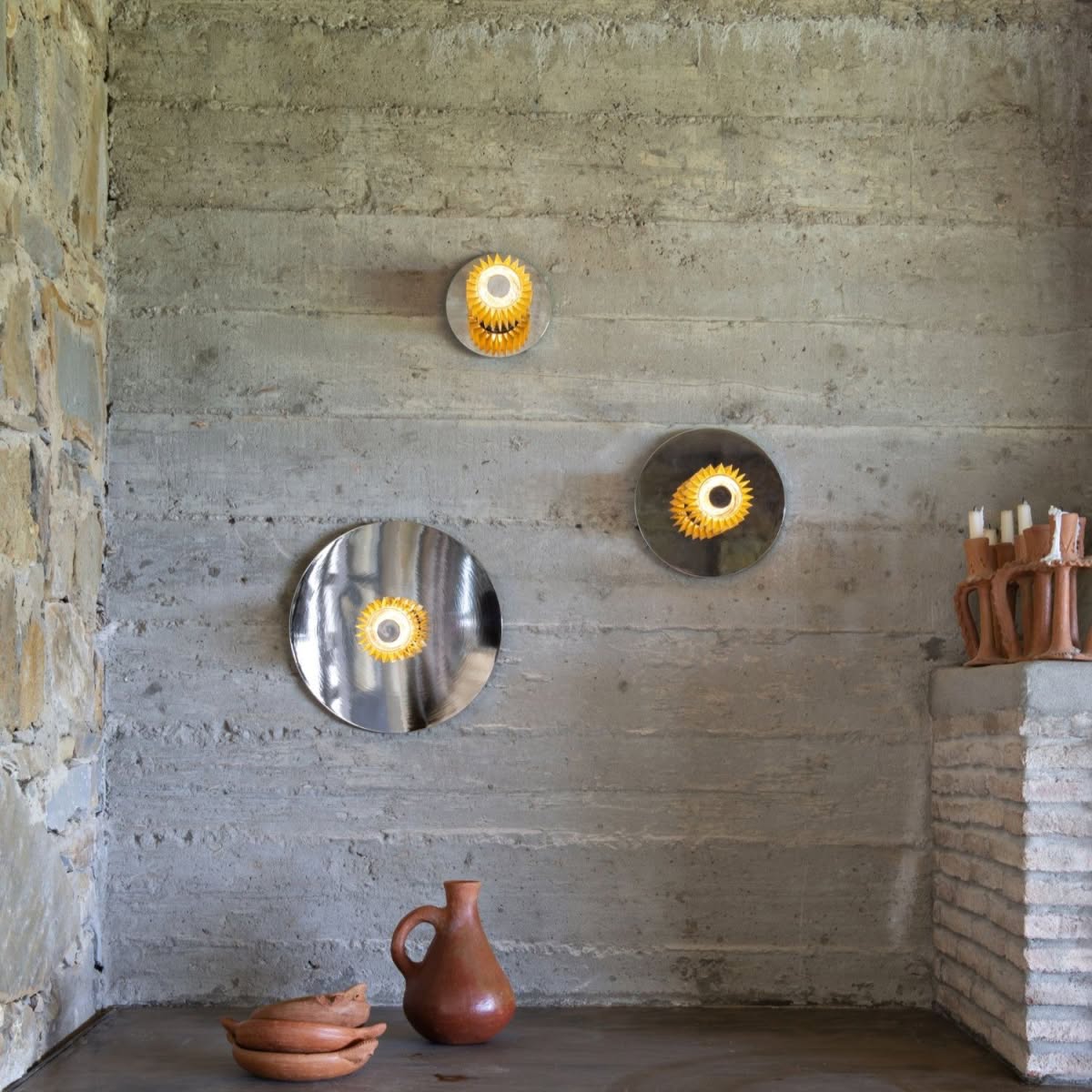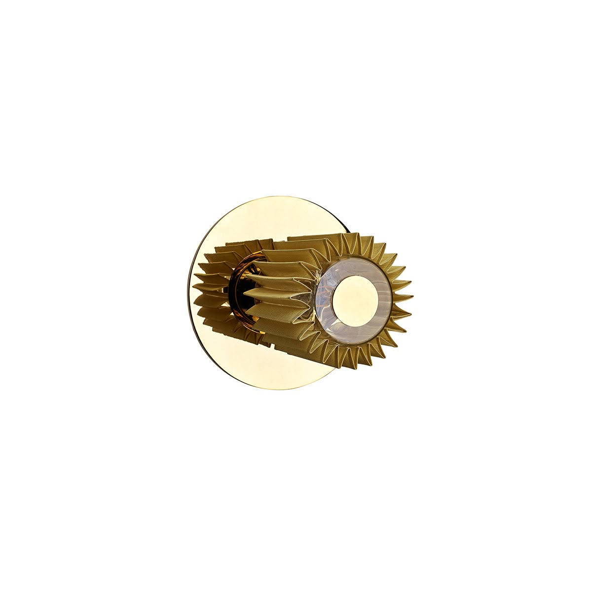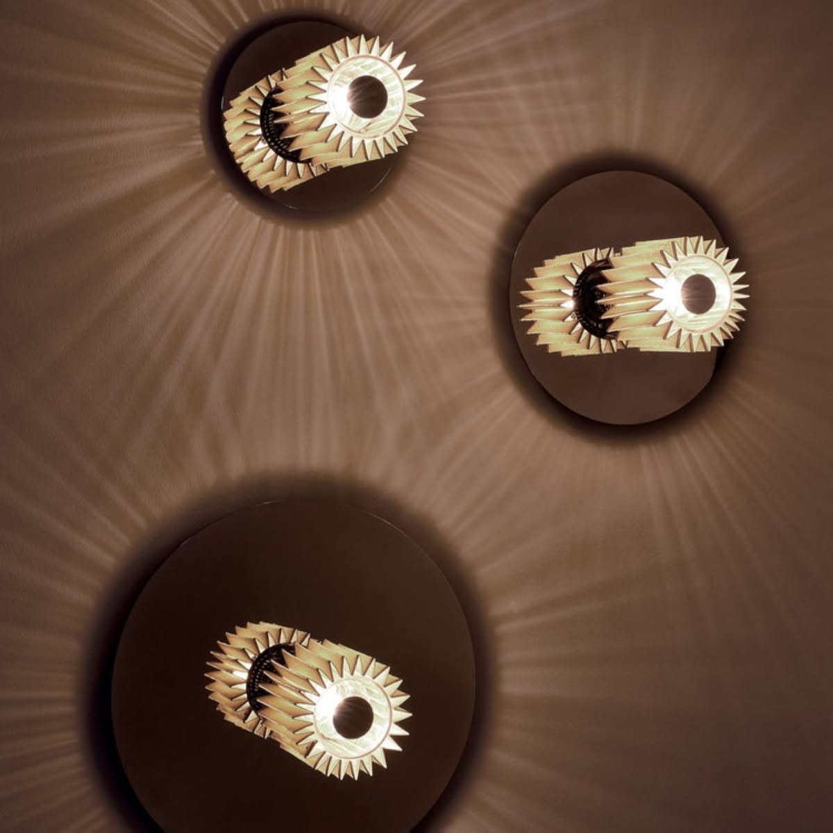 In The Sun Wall Lampada da parete di DCW éditions è la lampada da parete di Dominique Perrault e Gaëlle Lauriot-Prévost progettata nell'ambito della ristrutturazione del Padiglione Dufour della Reggia di Versailles come omaggio al Re Sole. La collezione "In The Sun" irradia tonalità festive di oro e argento, in combinazione con ombre delicatamente proiettate. Il risultato è un'atmosfera davvero speciale negli ambienti che illuminano. Che sia montata a parete, a soffitto o a sospensione, il risultato è sempre magico.