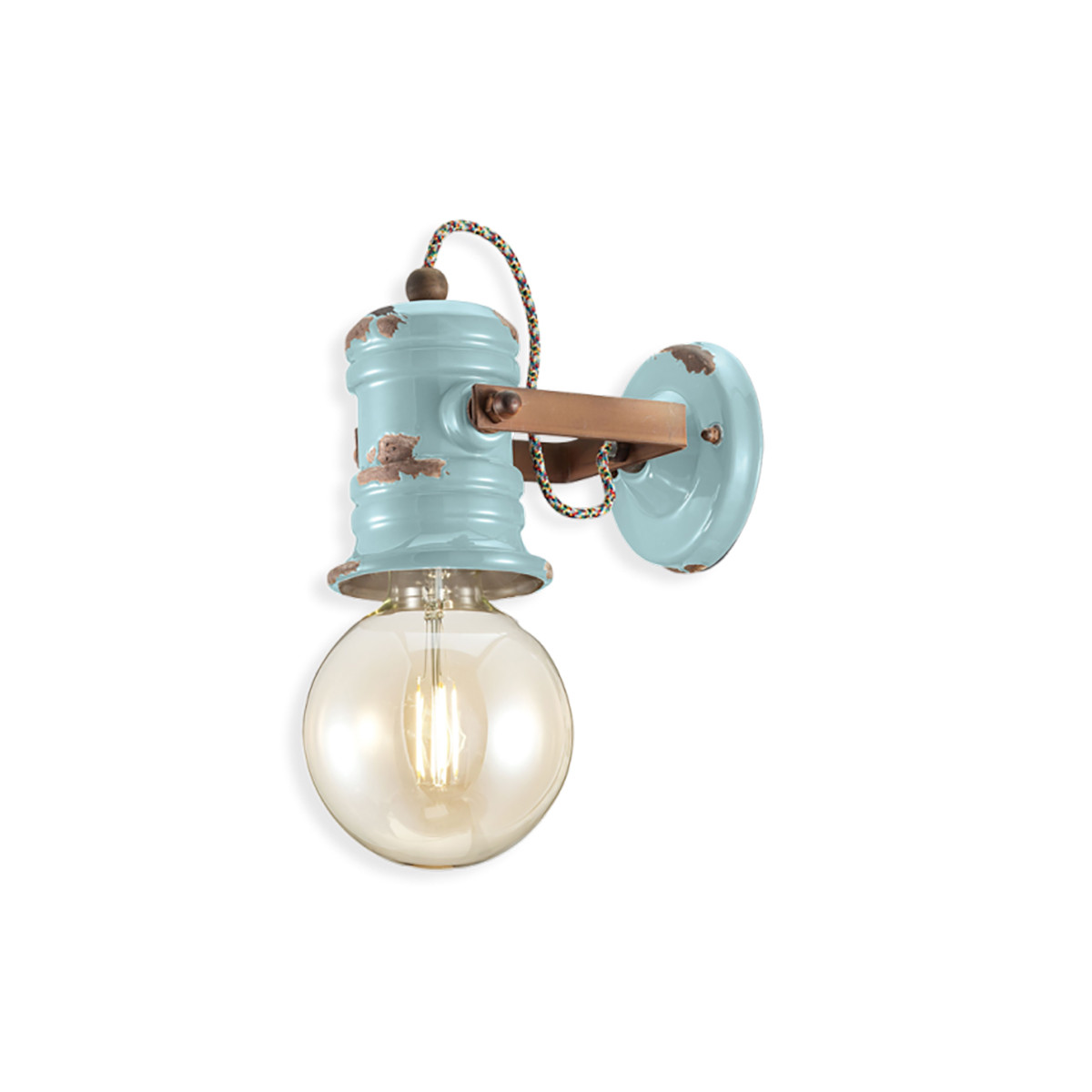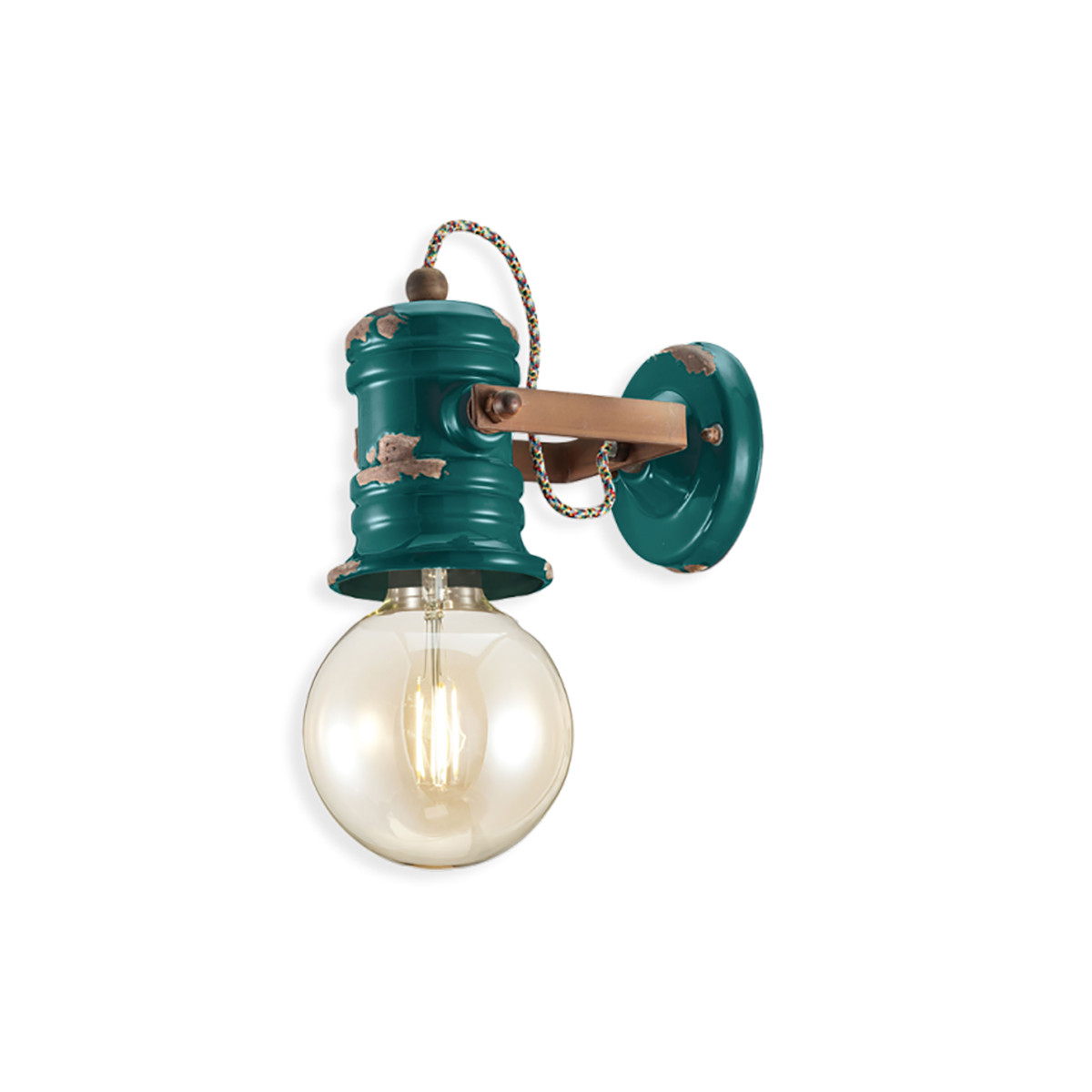 Lampada Urban C1843 Retrò di Ferroluce è la lampada da parete dai colori retrò e dall’utilizzo di smalti che conferiscono alla superficie un aspetto tattile e visivamente consumato, anche le applique con le soluzioni di illuminazione più innovative riescono a trasferire un sapore nostalgico. È il connubio tra ceramica, vetro e metallo che rende unica la lampada a sospensione dai tratti lineari. Grazie al vetro lucido diffonde grande luminosità in tutta la stanza.  Il metallo effetto corten, ottenuto per mezzo di ossidazione naturale, e  le dieci colorazioni vintage differenti della ceramica esaltano le caratteristiche lampadine a bulbo.