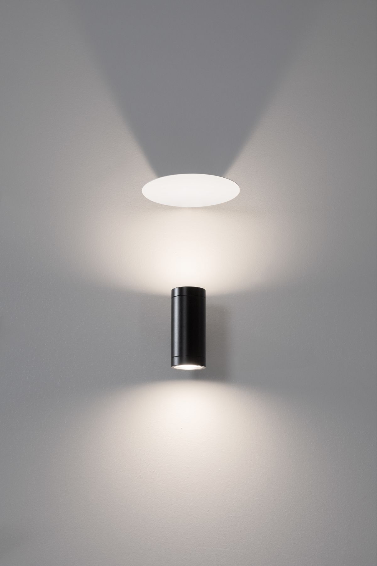 Movida Lampada da parete di Karman è la lampada da parete composta da una coppia di faretti + dischi orientabili fissati a parete, che giocano rimandandosi luci e ombre, creando fantasiosi giochi di riflessi a parete. Il faretto cilindrico in alluminio bianco o nero con doppia fonte di luce - inferiore e superiore –rimbalza nell’oscurità i suoi raggi su uno o più dischi deflettori orientabili in alluminio bianco. Il faretto cilindrico sa vivere anche da solo, ed entrambi sono concepiti sia per interni che per illuminazione outdoor.