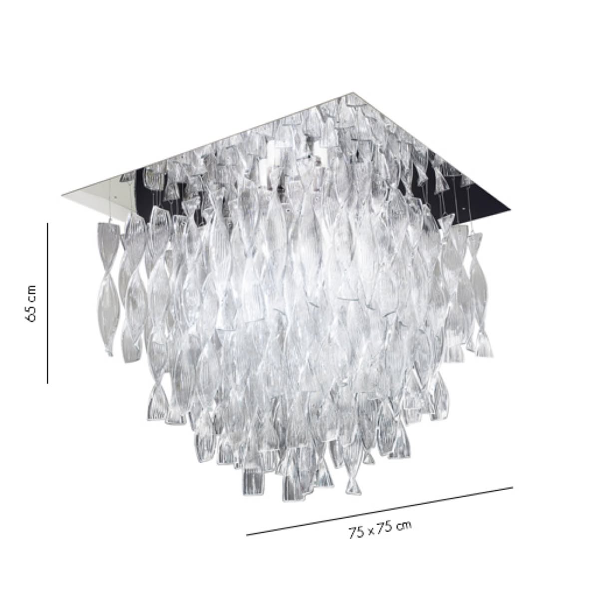 Aura Lampada a soffitto è la lampada a soffitto della collezione composta da lampade da parete, soffitto e sospensione, con pendenti in vetro di Murano colorato incamiciato, cristallo e ritorti a mano. Disponibile in vari colori e dimensioni. Sorgente luminosa con attacco a vite.