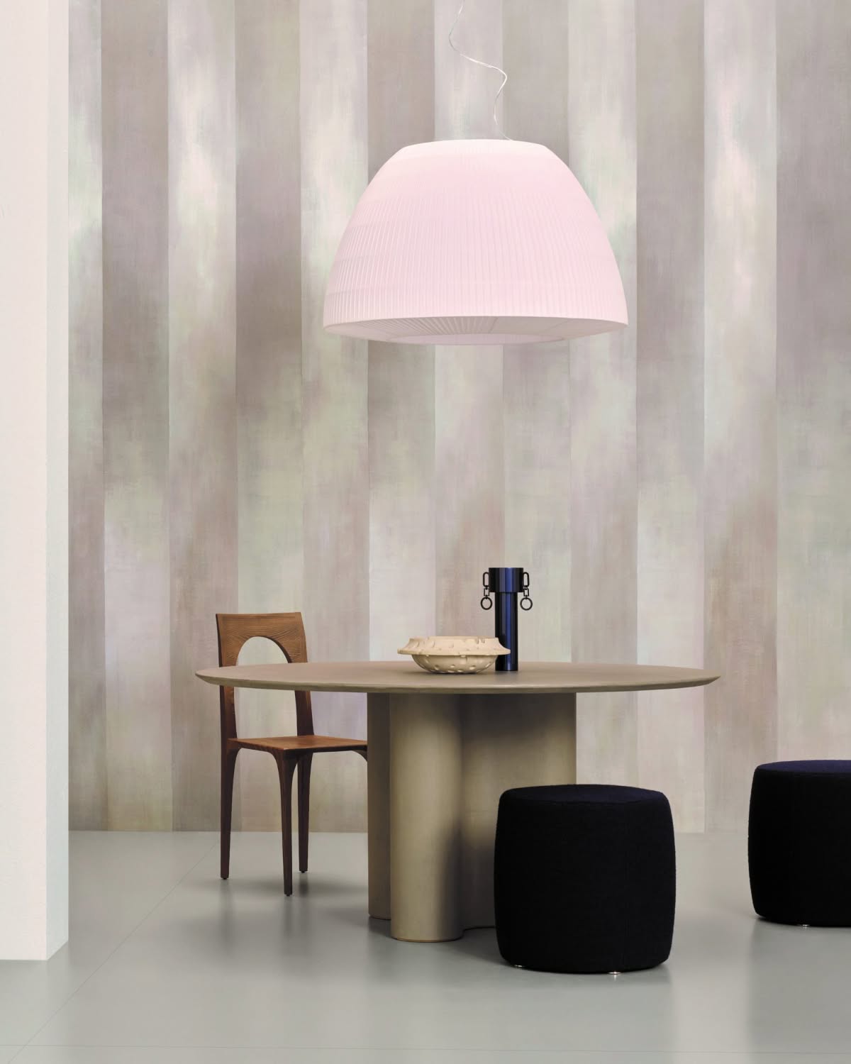 Bell Lampada a sospensione è la lampada a sospensione appartenente a una collezione composta da lampade da soffitto e a sospensione con struttura metallica rivestita con fettuccia di tessuto pongé superliscio. Disponibile in vari colori e dimensioni. Sorgente luminosa con attacco a vite o a LED integrato dimmerabile, dove le linee morbide e il raffinato tessuto pongé conferiscono a Bell un design senza tempo, che si distingue per la sua eleganza discreta e la sua capacità di valorizzare ogni tipo di ambiente. Anche nelle sue dimensioni più importanti, Bell mantiene una sorprendente leggerezza visiva, integrandosi con eleganza senza appesantire lo spazio. La sua presenza, infatti, arricchisce l’ambiente con una luce diffusa e avvolgente. Grazie alle numerose varianti cromatiche e dimensionali, Bell si adatta a diversi stili e progetti, offrendo una personalizzazione completa. La collezione comprende sospensioni, applique, plafoniere e lampade da terra, perfette per ambienti di ogni dimensione.