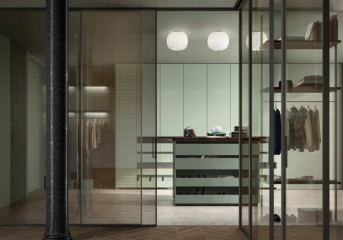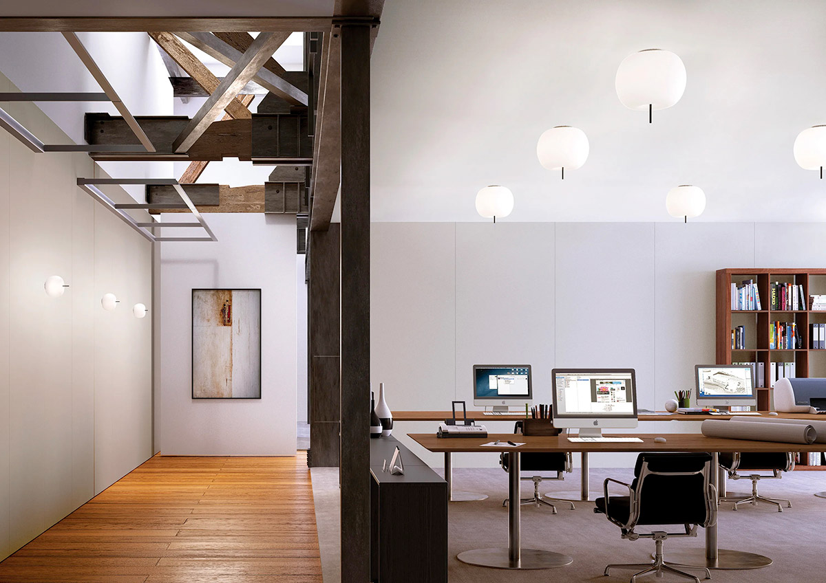 Kushi lampada da soffitto di KDLN è una lampada da soffitto a plafone. Diffusore in vetro opale incamiciato e soffiato. Struttura in metallo verniciato in tre versioni: nero, rame e ottone.
