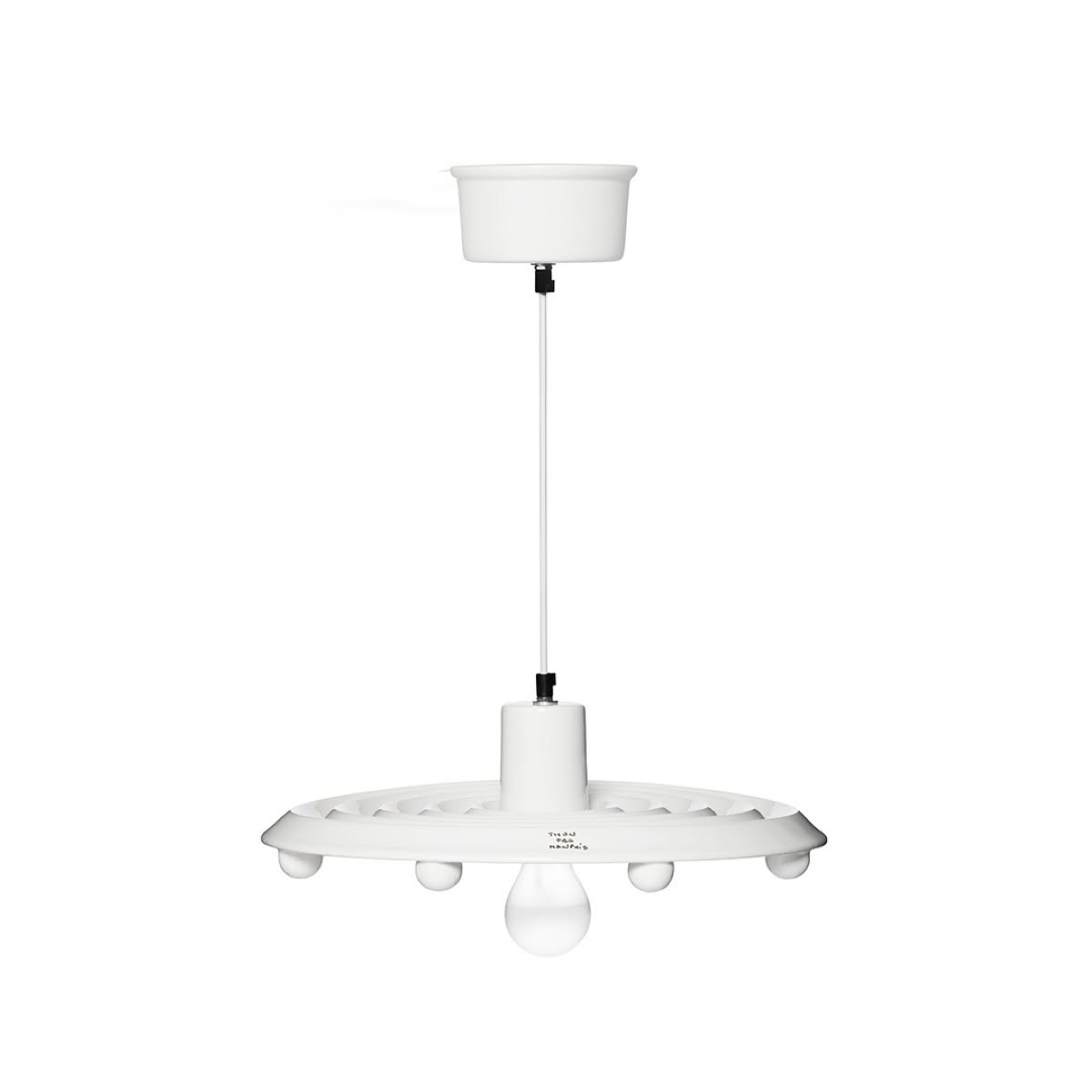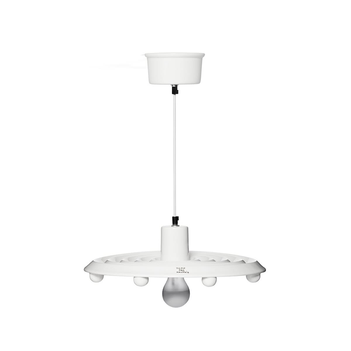 Memphis Milano Santa Ana Lampada da soffitto di Matteo Thun è una lampada di design in ceramica. Chissà se la forma di Santa Ana di Matteo Thun intenzionalmente ricorda il disco volante dell’UFO avvistato nel 1965 nell’omonima città californiana. Questa lampada a soffitto utilizza il bianco come unico colore per definire la forza materica e plastica del materiale ceramico utilizzato per il paralume che ne definisce la composizione basata sul cerchio e la ripetizione della sfera. Thun, figlio di ceramisti, affronta in modo creativo il rapporto con questo materiale: ha affermato più volte di avere una predilezione per l’artigianalità, per il “fatto a mano”.