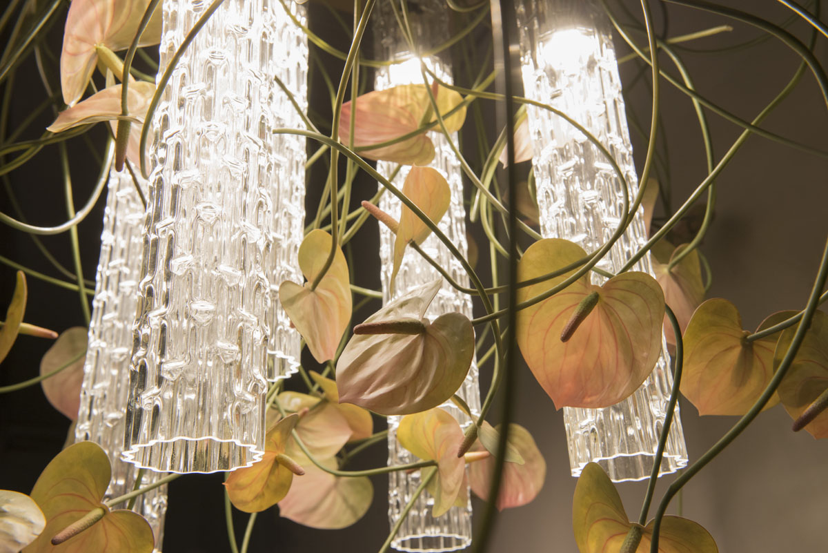Lampadario Anthurium Flowers Power H 80 65x65 VGnewtrend | Lampadari floreali, con fiori artificiali, flower power, sospensioni, da soffitto, vetro murano