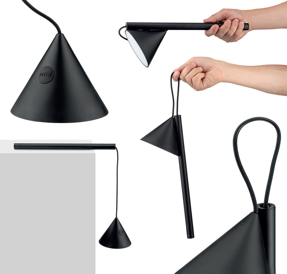 Alessi ME01 B Tsumiki Lampada da tavolo Nero è la lampada di design portatile in metallo e resina termoplastica, nero. Batteria ricaricabile con cavo USB-C e touch dimmer capacitivo. Luce a LED 3,5W 5V. “Tsumiki” è un gioco da tavolo giapponese che si basa sulla costruzione di forme tridimensionali a partire da semplici blocchi di legno. Le innumerevoli combinazioni di forma stimolate dal gioco vengono riprese nella lampada disegnata da Medum, la cui forza è una grande versatilità di utilizzo. Il primo impatto è quello di una tipica lampada da tavolo dalle forme semplici e fresche. In realtà i tre volumi che costituiscono la testa, lo stelo e la base di appoggio sono vincolati da un’ingegnosa tecnologia di accoppiamento magnetico che offre numerose possibilità di composizione. La lampada può inserirsi così in differenti contesti, sia domestici sia di lavoro, plasmandosi in accordo alla funzione desiderata. Una lampada senza fili tuttofare, adatta ai nostri tempi. DEDICATO A. Clienti Alessi storici e nuovi, attratti da dettagli costruttivi inediti e non presenti sul mercato, che portano una vera novità funzionale in un panorama di prodotto molto affollato. NOTE DI DESIGN. Versatilità magnetica. Gli elementi magnetici di accoppiamento permettono una completa libertà di orientamento della luce e di disposizione nello spazio delle tre componenti della lampada. Ad esempio come una classica lampada da tavolo, oppure separata dalla base in modalità leggera e portatile, o anche appesa utilizzando come gancio il cavo tessile che alimenta la sorgente luminosa. Tuttofare. Estremamente versatile, la lampada è adatta all’utilizzo sia a casa che in ufficio, ma anche in locali pubblici, per illuminazione puntuale e d’ambiente o come elemento di arredamento. Freschezza. Design giapponese pulito ed elegante composto da tre forme primarie, studiate attentamente per un perfetto equilibrio di proporzioni. Confezione realizzata con in cartone avana riciclato.