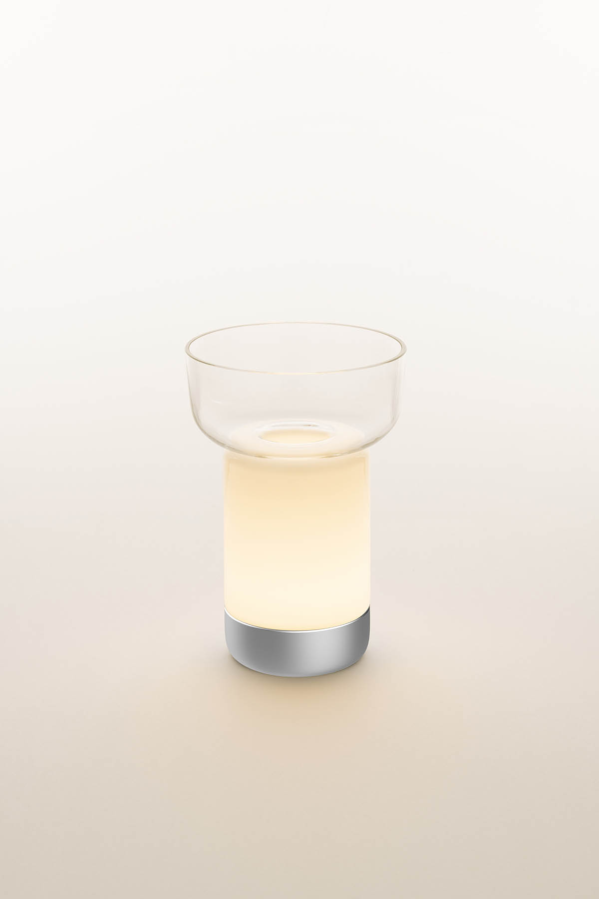 Artemide Bontà con ciotola Lampada da tavolo è la lampada da tavolo portatile che riflette sull’interazione su luce, cibo e convivialità. È una lampada portatile che interagisce con gli elementi della tavola. Un corpo in vetro bianco opalino texturizzato diffonde la luce per creare una morbida atmosfera, nel suo incavo superiore si inserisce una ciotola in vetro per accogliere cibi da condividere. Una ciotola più alta ed una più ampia, quasi un piatto, possono combinarsi o alternarsi alla sua sommità Questi e la lampada stessa sono realizzati in vetro lavorato a mano, pezzi unici la cui qualità materica, trasparenza e colore generano un’interazione speciale con la luce e il cibo. L’attenzione al dettaglio è massima per dare il giusto valore all’oggetto e a ciò con cui si relaziona. La luce diventa un elemento che ricrea la giusta atmosfera interagendo con gli elementi della tavola.