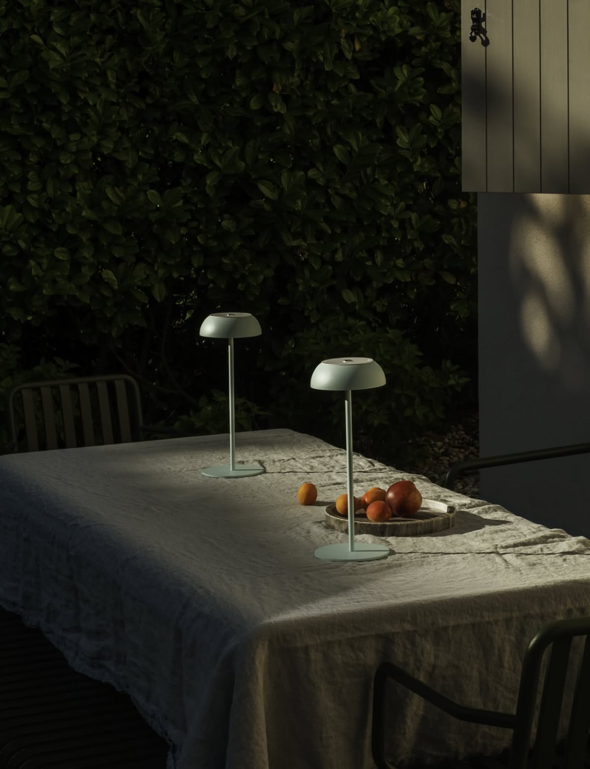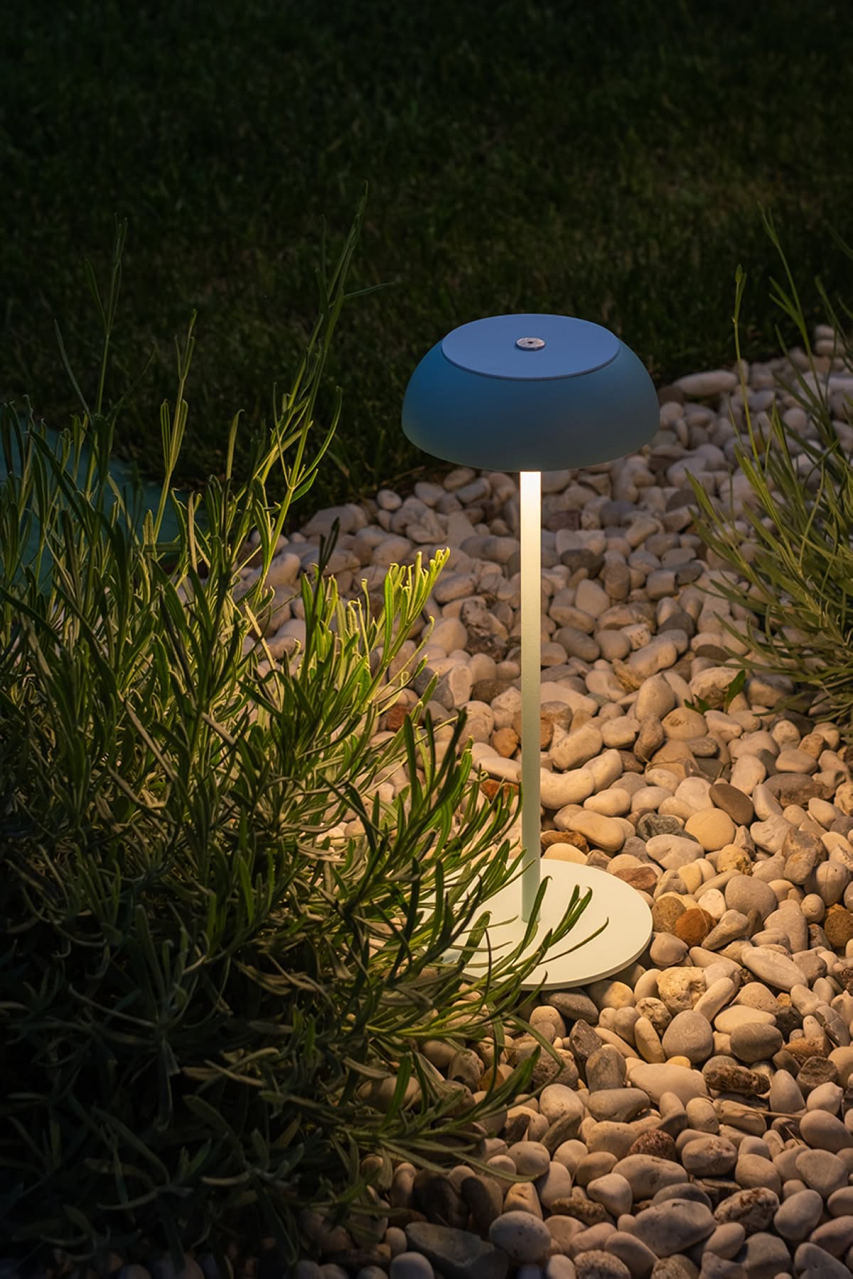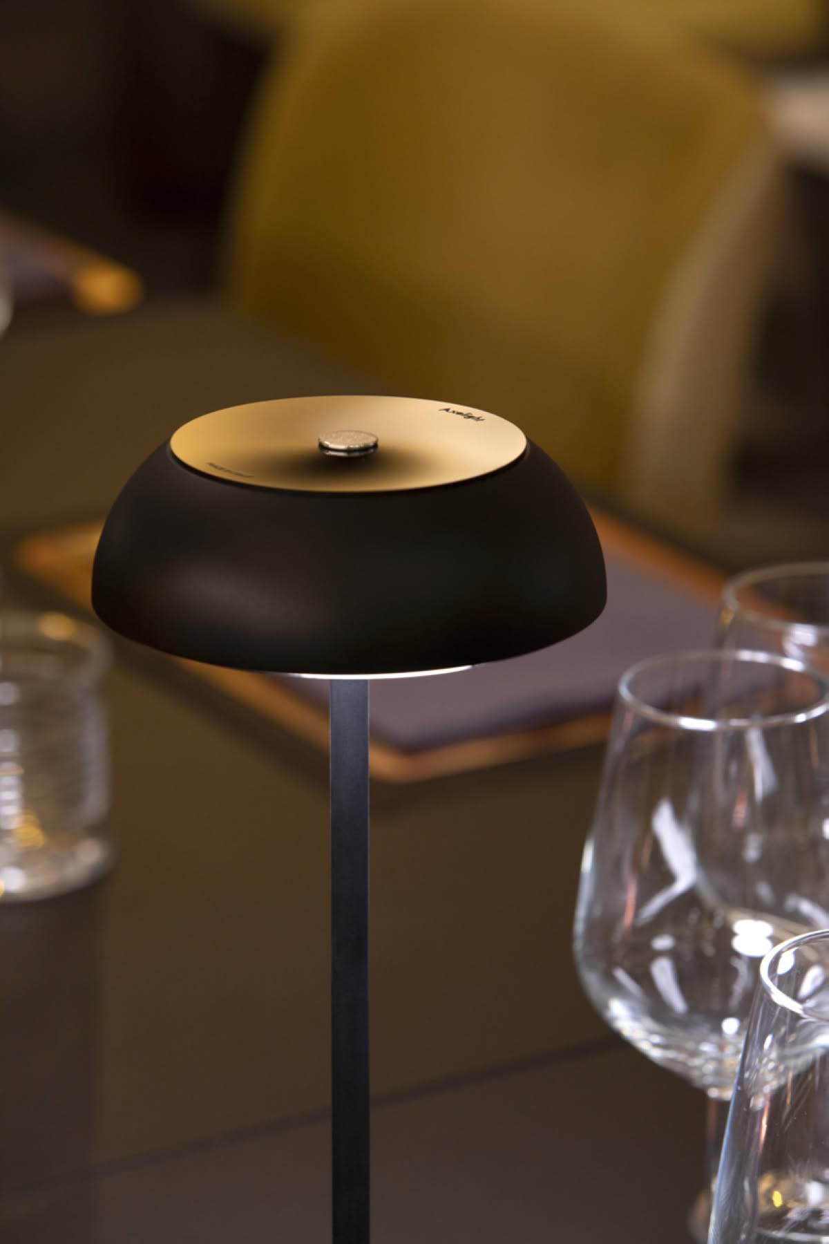 Float Lampada da tavolo è la lampada da tavolo nata dall’ingegno di Axolight e dalla creatività del designer Mario Alessiani, una lampada multifunzionale e portatile, utilizzabile sia all’esterno che all’interno, progettata per diversi utilizzi: tavolo, terra, sospensione, parete. Ideale quanto per ambienti domestici – dal salotto al giardino – che per il mondo della ristorazione, sia per l’eccezionalmente versatilità funzionale, sia perché il corpo lampada è ricaricabile senza l’ausilio delle basi o dei cavi di sostegno, consentendo così la ricarica simultanea di più lampade in spazi ristretti. Il corpo lampada, realizzato in alluminio, è liberamente poggiabile su una qualsiasi bottiglia (dalla piccola alla magnum), grazie ad un foro centrale chiuso nell’estremità superiore. Per le versioni da tavolo e da terra sono inoltre in dotazione dei piedistalli in acciaio, da 36 cm e 120 cm, mentre per le versioni da soffitto e da parete degli appositi cavi.È dotata di un sistema soft touch di accensione e regolazione del flusso luminoso e dispone di una batteria utilizzabile per circa 9 ore, ricaricabile tramite un cavo USB e sostituibile a fine ciclo. Il grado di protezione alle polveri ed all’acqua è un IP 55, che rende la lampada ideale anche per gli ambienti esterni.