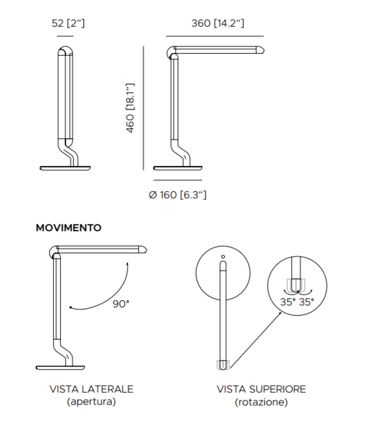 Fonte luminosa: 500 Lm 2.700 K | CRI >90 Interruttore sulla base dimmerabile