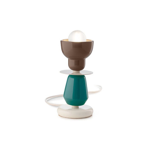 Lampada Berimbau C2604 Decò di Ferroluce è la lampada da tavolo ispirata ad un oggetto archetipico che nasce dalla tecnologia che ospita: così il volume principale, creando un offset della sorgente a bulbo, diventa il leitmotiv di una collezione diversificata dove centrale è proprio l’elemento illuminante, declinato in più applicazioni