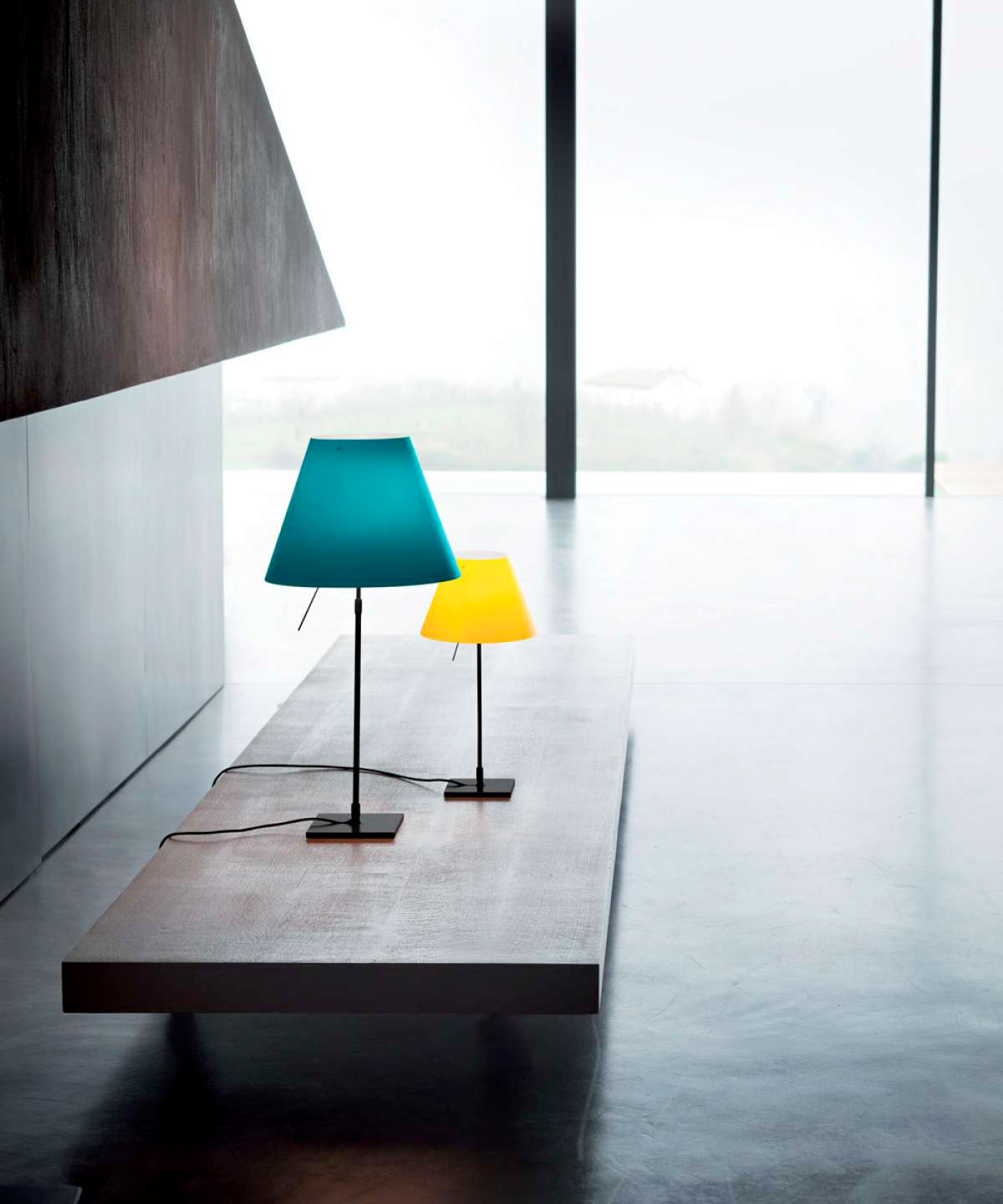Luceplan Costanza D13 Lampada da tavolo è la lampada da tavolo dimmerabile con stelo telescopico tanto discreta quanto solida. Costanza si inserisce con semplicità in ogni ambiente senza porre vincoli stilistici di accostamento. Il paralume di policarbonato appoggia su uno stelo di alluminio che, in virtù dell'innovativa tecnologia telescopica, può essere facilmente regolato in altezza da 76 a 110 cm. Un interruttore e un sensore corrispondente a forma di asta si trova direttamente sull'attacco del portalampada, che può accendere e spegnere la luce della lampada e dimmerarla attraverso quattro regolazioni. Costanza si inserisce magnificamente in qualunque ambiente, dalla camera da letto alla zona giorno o ufficio come lampada da lettura. Anche in virtù della forma del paralume che permette la diffusione della sua luce sia verso il basso sia leggermente verso l'alto, può essere utilizzata con successo anche per l'illuminazione d'atmosfera.