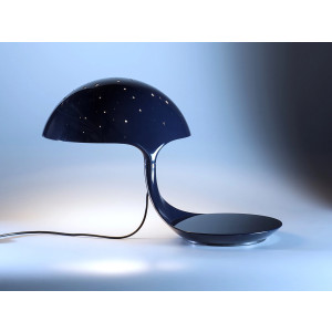 Disegnata nel 1968 da Elio Martinelli, il Cobra rappresenta uno dei primi apparecchi illuminanti in resina prodotti con un particolare sistema di stampaggio. La lampada è caratterizzata da una linea semplice e da una forma geometrica inscritta in una sfera, ma con la rotazione del braccio il riflettore assume una posizione che richiama la testa di un cobra pronto allo scatto. Lampada da tavolo a luce diretta, formata da due corpi stampati in resina. Disponibili nel colore bianco, nero o rosso. Il corpo inferiore ruota sulla base sottostante in acciaio ed è collegato al corpo superiore tramite un giunto centrale che permette la rotazione di 360°. Riflettore interno in alluminio verniciato nel colore bianco. Disponibile anche nelle diverse versioni del progetto Cobra Texture.