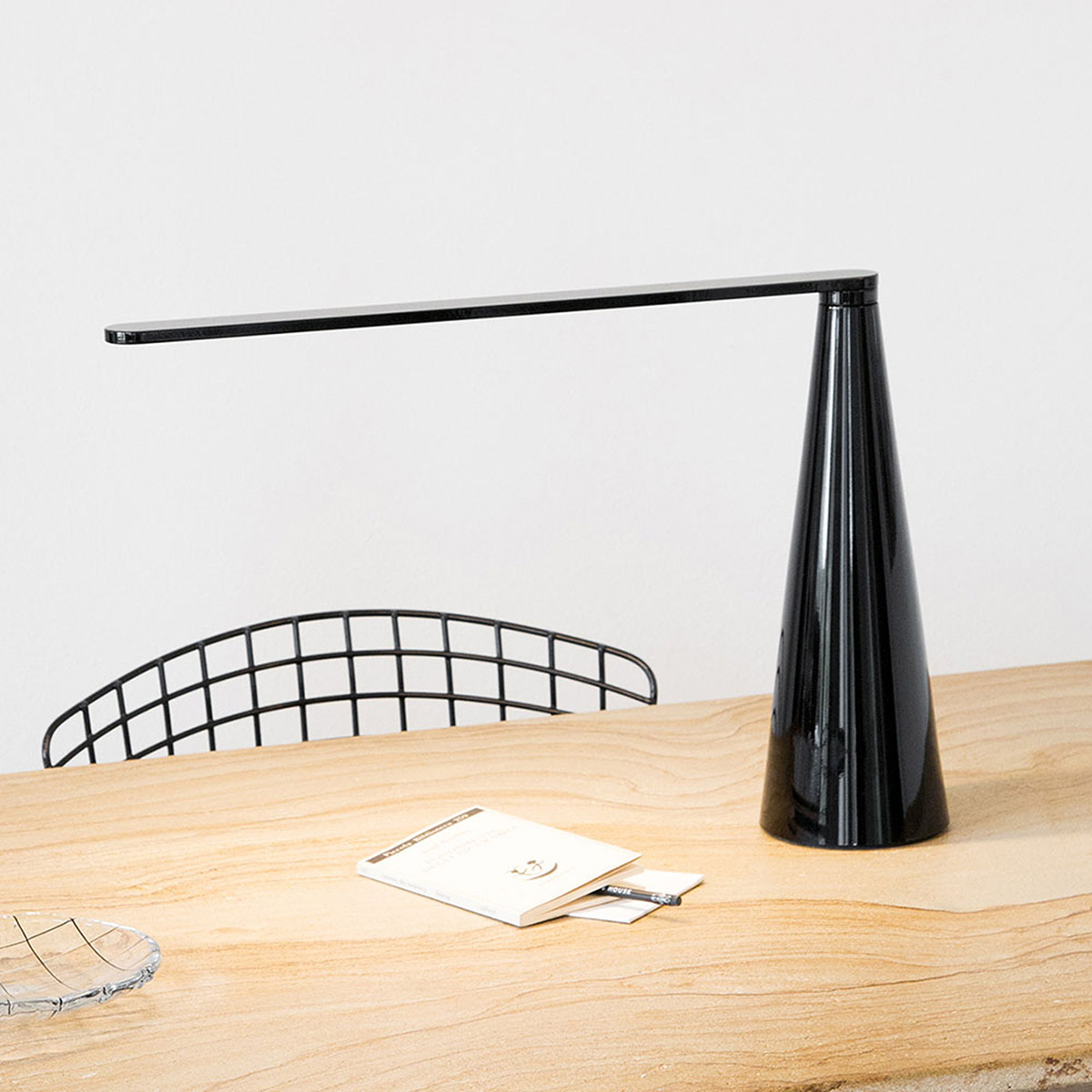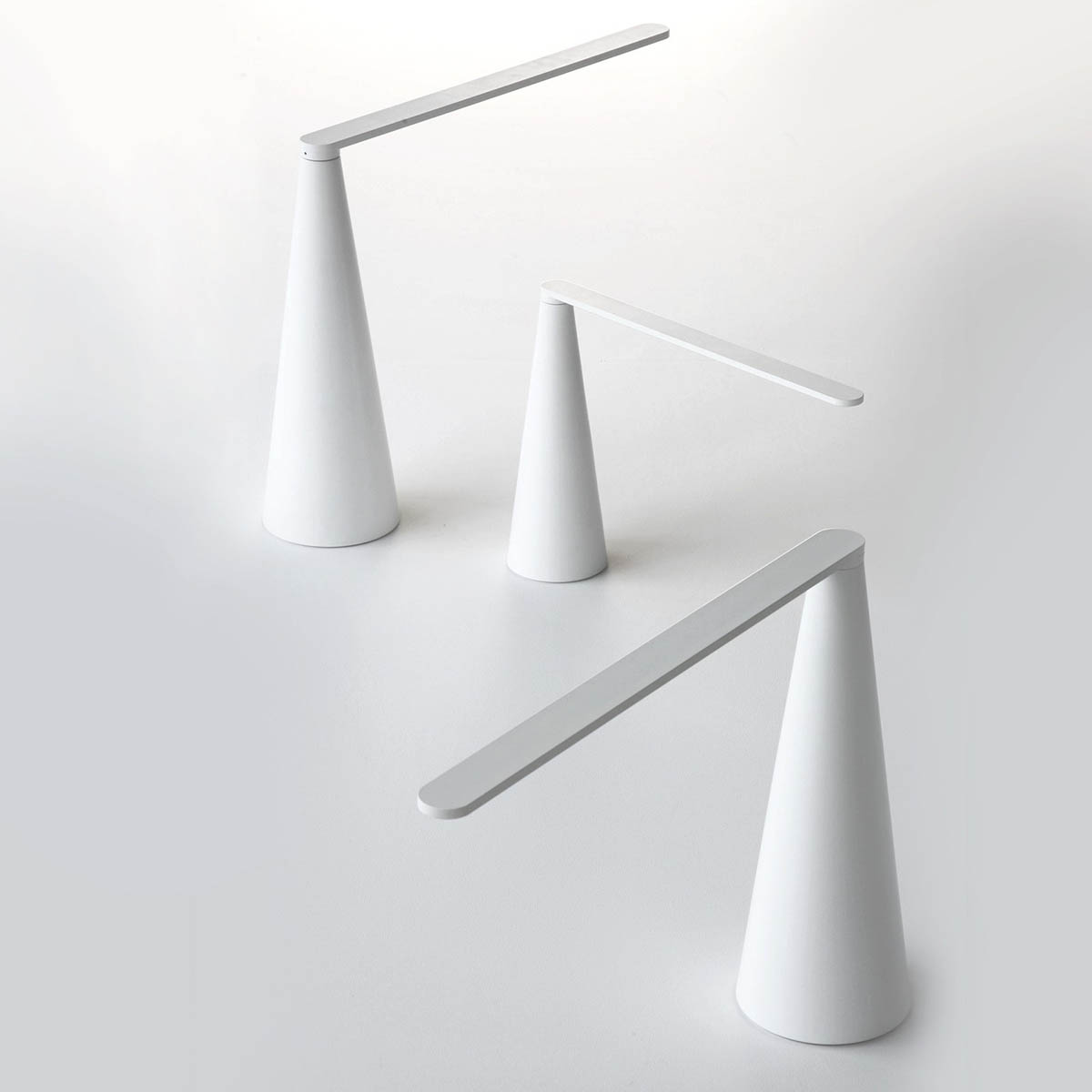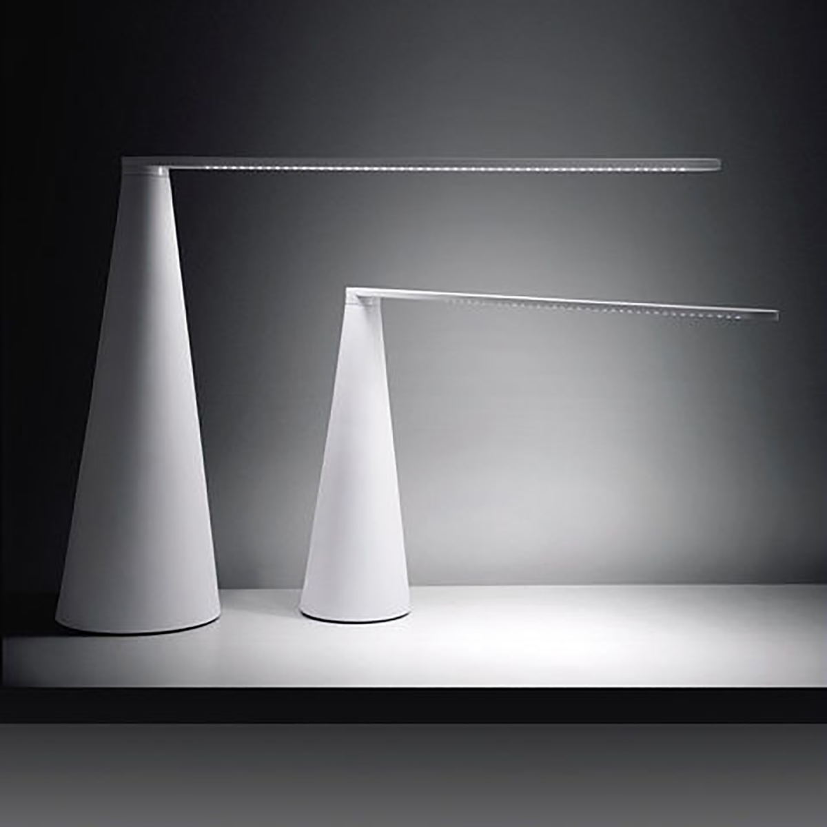 L’ispirazione nasce dall’intento di progettare una lampada da tavolo a LED, dove il LED fosse l’unica fonte luminosa con la quale potesse essere realizzata. Il mio interesse nel LED era concentrato principalmente nella sua forma e nella sua proporzione, unica nel suo genere: lunga, stretta e piatta, quindi non assimilabile ad altre fonti luminose ad esempio puntiformi o con spessori importanti. Lo spessore del braccio di Elica infatti è stato dimensionato in funzione dei LED ed il braccio è stato il punto di partenza del progetto: 8mm è lo spessore minimo che garantisce l’alloggiamento dei LED e la resistenza alla flessione. Dato lo spessore del braccio bisognava definirne la forma, conferendo una rotondità finale al braccio che è figlia della rotazione. Come raccordare quindi un cerchio ad un altro cerchio più grande in modo da rendere la base stabile? Con un segmento dritto. Si ottiene quindi un cono. L’altezza della lampada e lunghezza del braccio sono dimensionati secondo i principi della sezione aurea e non è presente nessun dettaglio tecnico a vista: il braccio stesso della lampada costituisce l’interruttore. Ruotando il braccio, la lampada si accende e si spegne, generando un effetto sorpresa. Inoltre l’accensione/spegnimento della lampada è accompagnato da un effetto sonoro, un click che costituisce un ulteriore feed-back per l’utente e contemporaneamente un richiamo al suono dei classici interruttori. L’ispirazione fin qui descritta era inoltre accompagnata da un preciso intento: non volevo progettare una lampada molto “tecnica” o un prodotto di styling, desideravo invece che potesse durare nel tempo. Pertanto mi sono ispirato alle forme pure delle grandi lampade del passato, come Atollo, Eclisse, Cobra. L’obiettivo dichiarato era creare una lampada senza tempo.