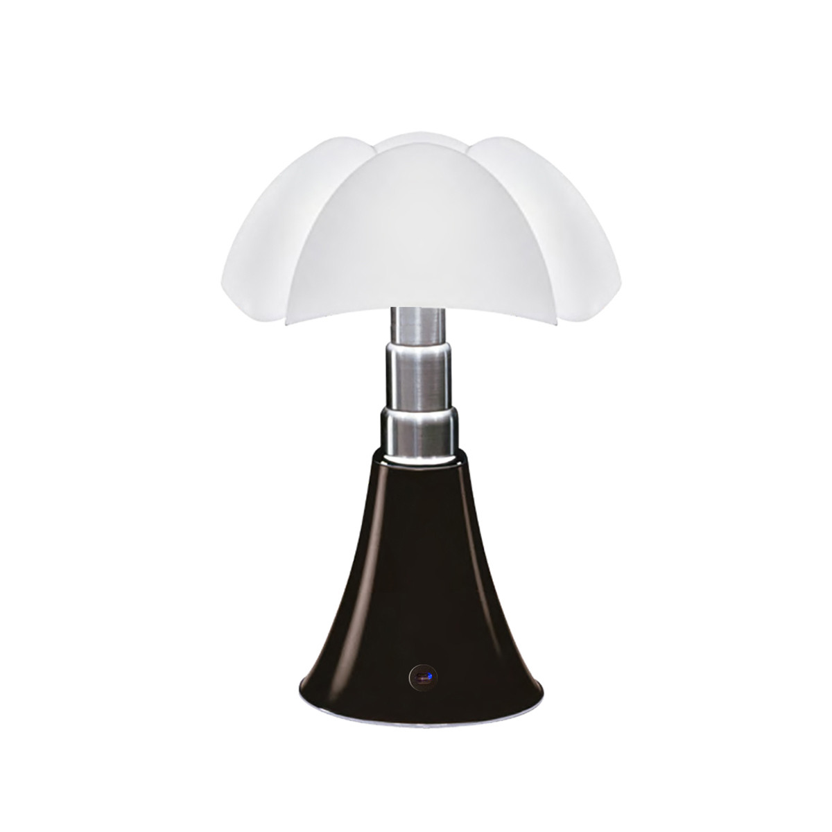 Lampada Minipipistrello Cordless marrone opaco by Gae Aulenti di Martinelli Luce è la lampada da tavolo a luce diffusa portatile, dimmerabile, cordless, con batteria ricaricabile e sensore touch di dimmerazione sul corpo lampada. Struttura in acciaio inox, diffusore in metacrilato opal testa di moro, base e pomello in metallo verniciato disponibili anche in diversi colori e disponibile in altre finiture. Carica batteria e batteria forniti, durata 6 ore. Sorgente di luce a LED integrato. Grazie alla tecnologia a LED il Minipipistrello è disponibile, oggi nella versione portatile, dimmerabile, cordless, con batteria ricaricabile e sensore touch. Il Minipipistrello, pronto da portare ovunque tu desideri: per una cena romantica, un appuntamento in terrazza, un compagno ideale per chi non vuole limiti. Sistema cordless ricaricabile (carica batteria e batteria forniti) tramite Micro-USB / Type-C durata 6 ore. Ricaricabile anche con power-banks compatibili. Lampada a luce diffusa, telescopio in acciaio inox. Diffusore in metacrilato opal bianco. Base e pomello: alluminio verniciato nel nuovo colore testa di moro. Disponibile anche nel colore di serie verde agave o bianco. Sorgente di luce a LED integrato.