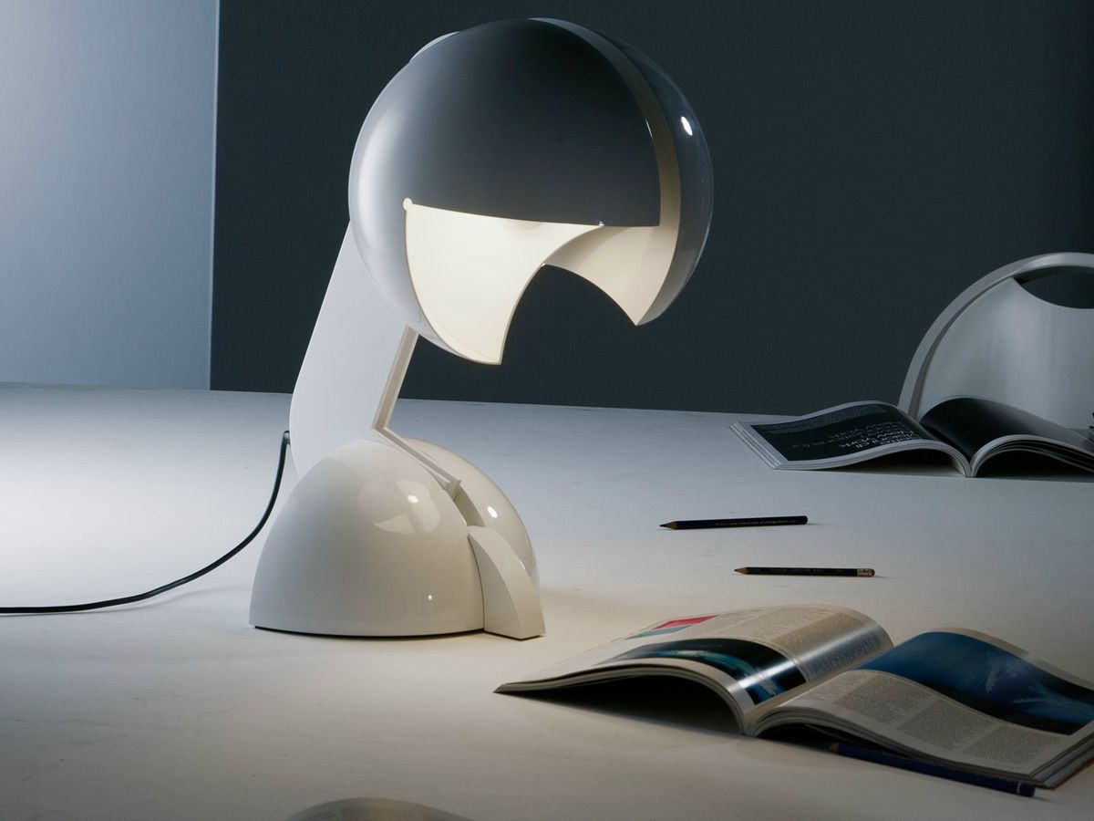 Ruspa lampada da tavolo di Martinelli Luce è la lampada da tavolo storica, formata da un braccio orientabile (in versione anche a 4 bracci) e una testa; la combinazione del movimento verticale del braccio e la testa della lampada ricordano chiaramente il macchinario dal quale prende il nome. Ruspa emette una luce che può essere diretta o indiretta, a seconda di come vuoi orientare la lampada. Lampada da tavolo a luce diretta e indiretta, in alluminio verniciato, braccio articolato sulla base, rotazione indipendente dei due riflettori sull'estremità del braccio. Disponibile anche nella versione con quattro bracci e otto riflettori. Per lampadina a Led.