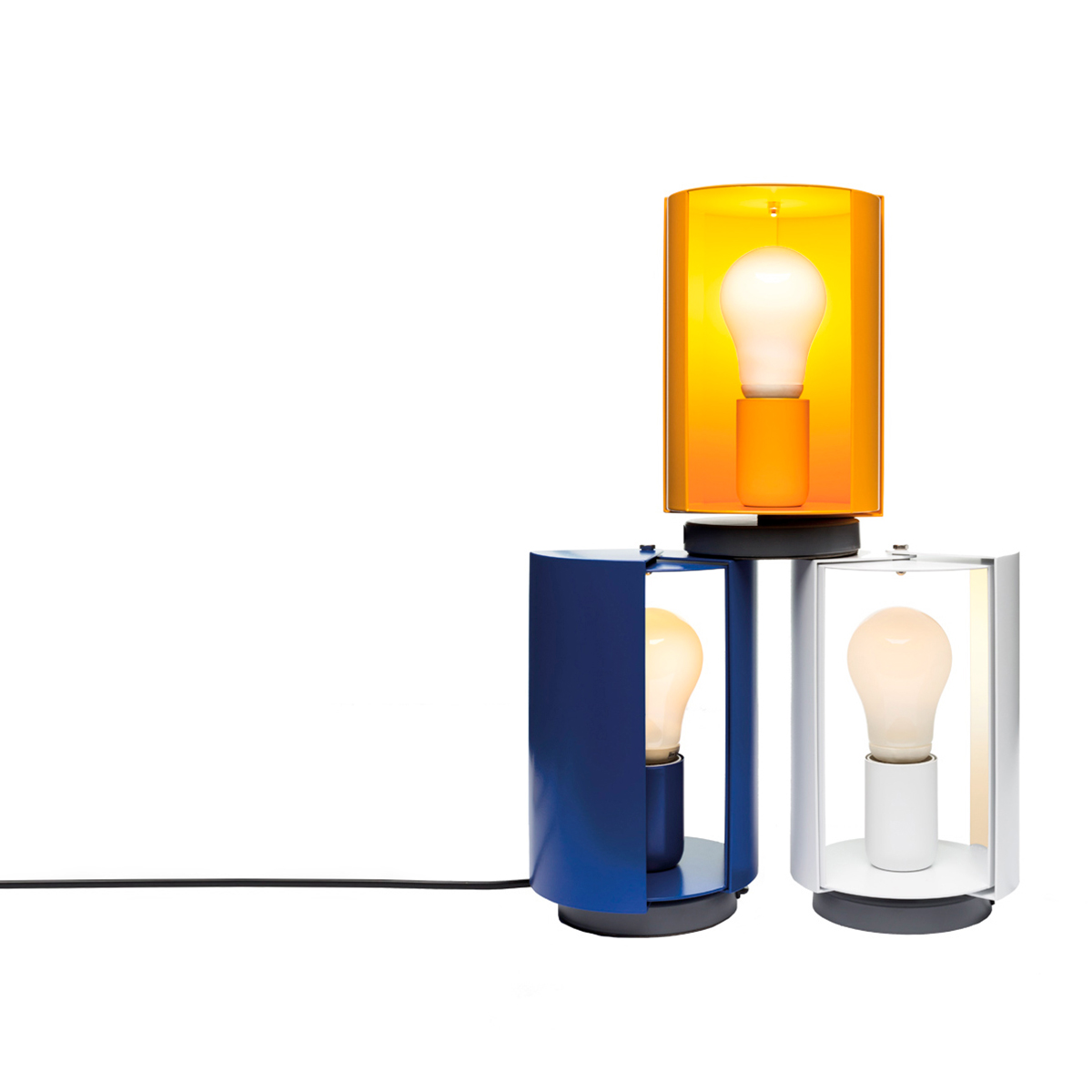 Pivotante a Poser lampada da tavolo di Nemo Lighting è la lampada di design innovativo per gli anni ’50 ma ancora attuale per questa lampada da tavolo dalla forma essenziale, L’emissione luminosa viene regolata semplicemente aprendo e chiudendo i volet. Costituita da un corpo cilindrico aperto da due lati, su cui ruotano due schermi che permettono la chiusura e l’apertura del fascio luminoso, così da poter gestire la luce in modo diretto o indiretto. Base in acciaio verniciato grigio opaco, corpo in lamiera curvata verniciato nei colori bianco, giallo o blu opaco. Interruttore su cavo.