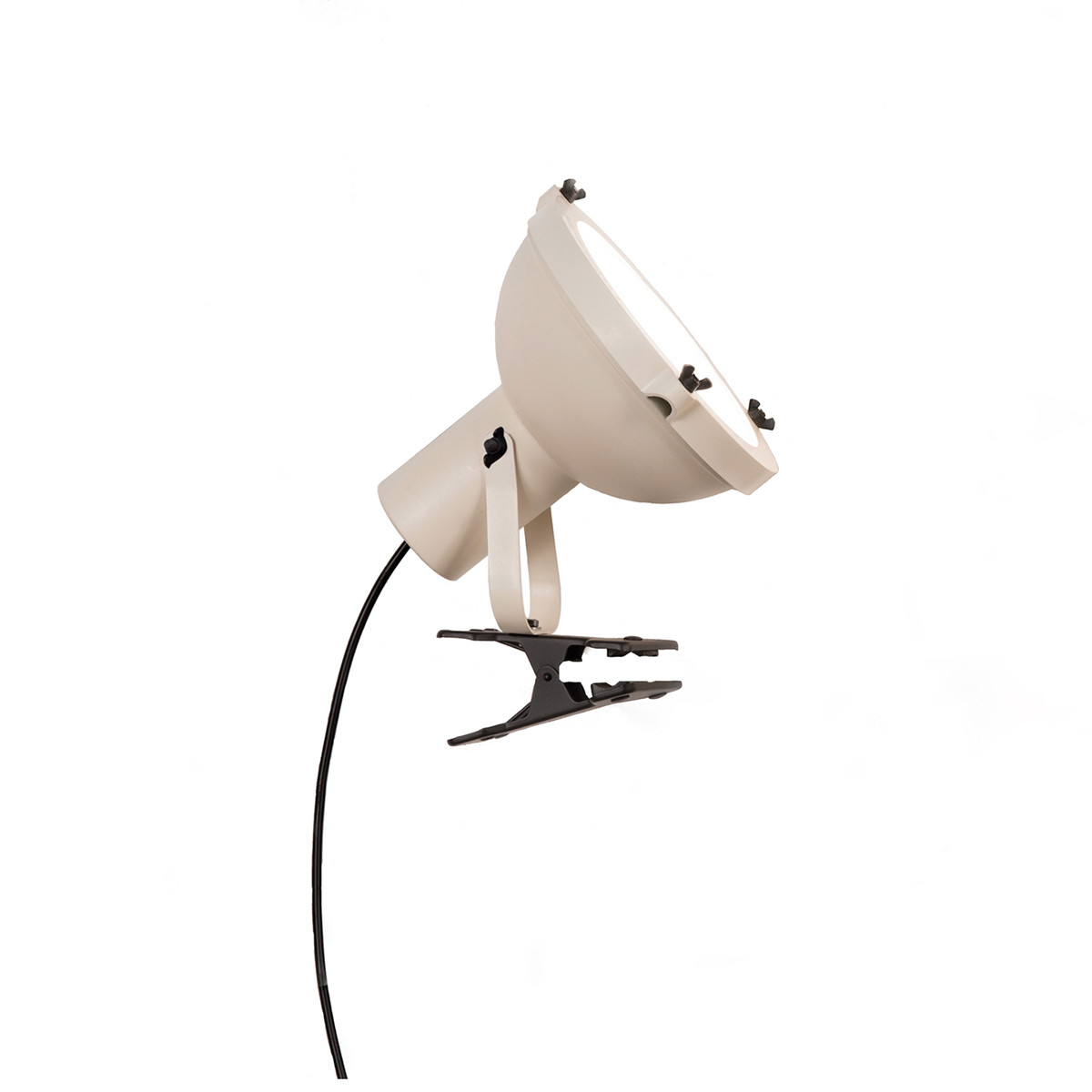 Projecteur 165 clip-pinza di Nemo Lighting è la applique di design in versione Mini orientabile del Projecteur 365. Disponibile nelle versioni a pinza, a parete e a sospensione. Il corpo della lampada è in alluminio verniciato blu notte, bianco sabbiato moka. Il vetro diffusore è bombato e sabbiato internamente. La pinza e il rosone sono verniciati nero opaco, i galletti di chiusura sono cromati neri come il resto della minuteria. La lampada emette una luce diffusa e orientabile. L'attacco E27 permette l'utilizzo di sorgenti fluorescenti e LED.
