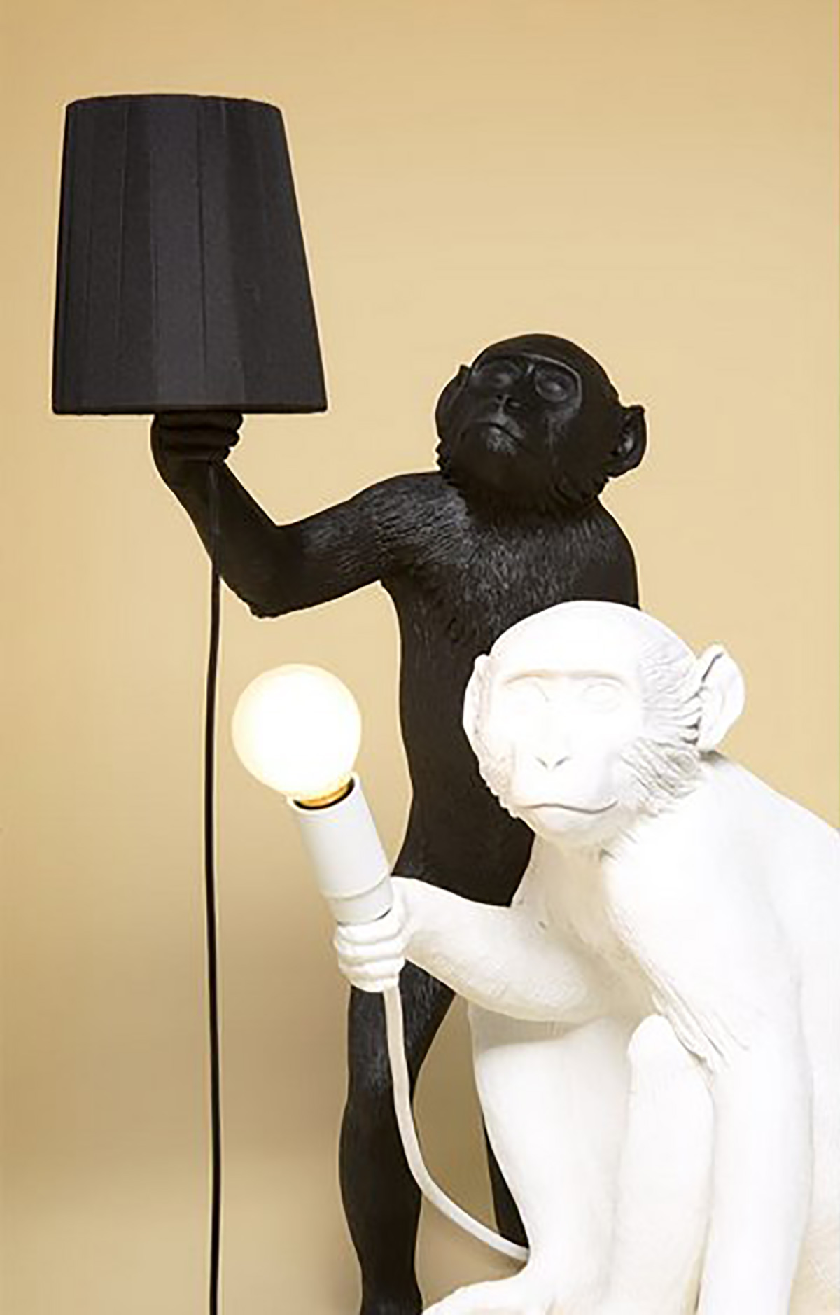 Monkey Lamp Standing Black Outdoor Seletti by Marcantonio è la lampada da esterno realizzata in resina ed ispirata ad una simpatica scimmietta tuttofare che stando all'inpiedi tiene nella zampa una lampadina LED collegata alla presa elettrica ed adatta anche ad utilizzo outdoor oppure indoor.