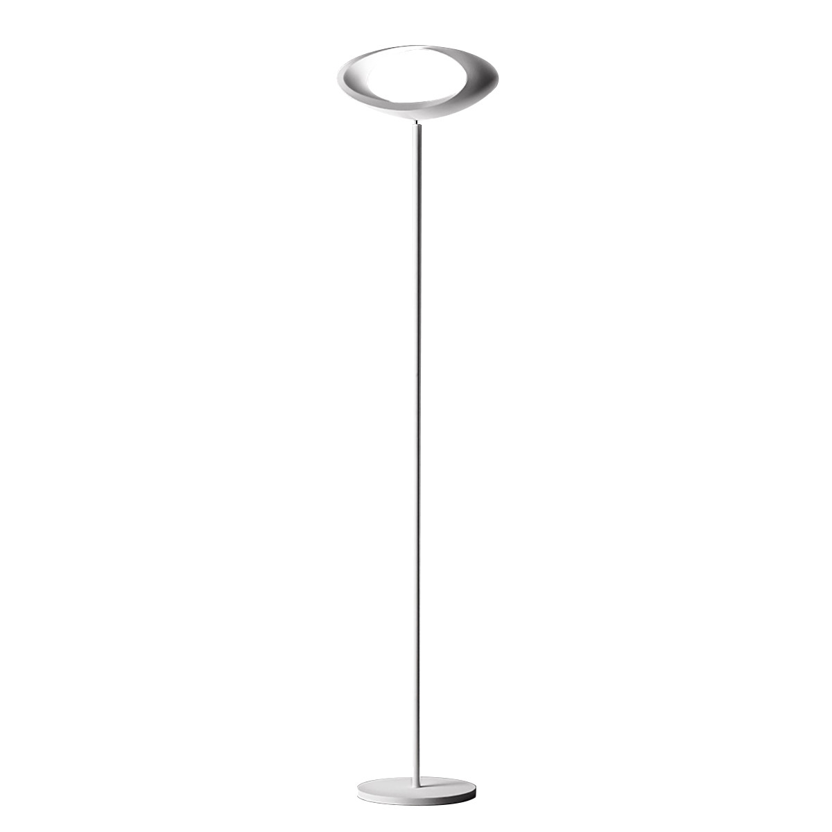 Artemide Cabildo lampada da terra è la lampada da terra a luce indiretta modella il corpo lampada, esaltandone la forma sinuosa e conferendone un sorprendente aspetto di anello luminoso. Attacco parete e corpo lampada in alluminio pressofuso verniciato.