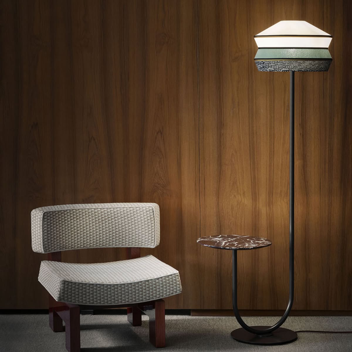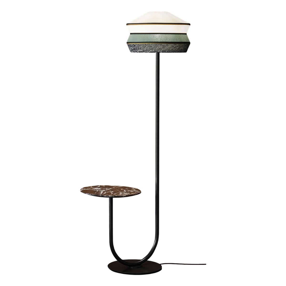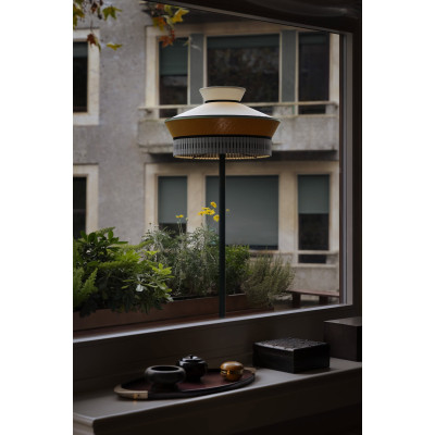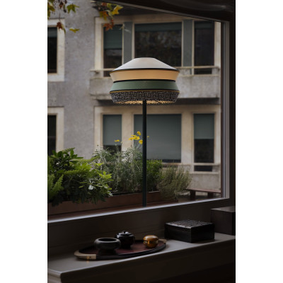 Calypso Martinique lampada da terra di Contardi è la lampda da terra indoor in metallo, tessuto e marmo. La lampada da terra Calypso è caratterizzata da uno stelo marrone testa di moro con un funzionale e raffinato tavolino in marmo rosso Levanto, che ben si armonizza con i colori vivaci dei paralumi. I tre modelli di paralume – Antigua qui proposto, Guadaloupe e Martinique, nomi ispirati alle isole caraibiche, sono proposti in un’ampia selezione di trame e finiture. La collezione si arricchisce inoltre della nuova tonalità Sahara, una sofisticata combinazione di colori polverosi e morbidi. La palette, caratterizzata da nuance calde e terrose e da motivi geometrici dal richiamo quasi tribale, consente molteplici possibilità di abbinamento, dando vita ad ambienti accoglienti e intimi.