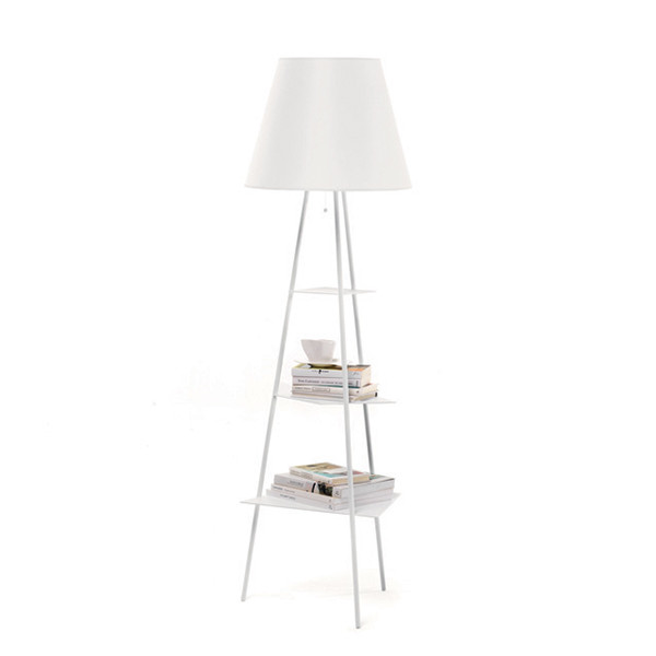 Tribeca Lampada da terra by Mogg è la lampada da terra di design étagère da terra in metallo verniciato opaco con paralume in tessuto di cotone accoppiato con pvc opalino. Presa USB «carica tutto» 12v alimentatore 110/220 posizionata sotto il ripiano inferiore. Cavo elettrico rivestito in tessuto. La lampada è disponibile nei colori bianco oppure nero.
