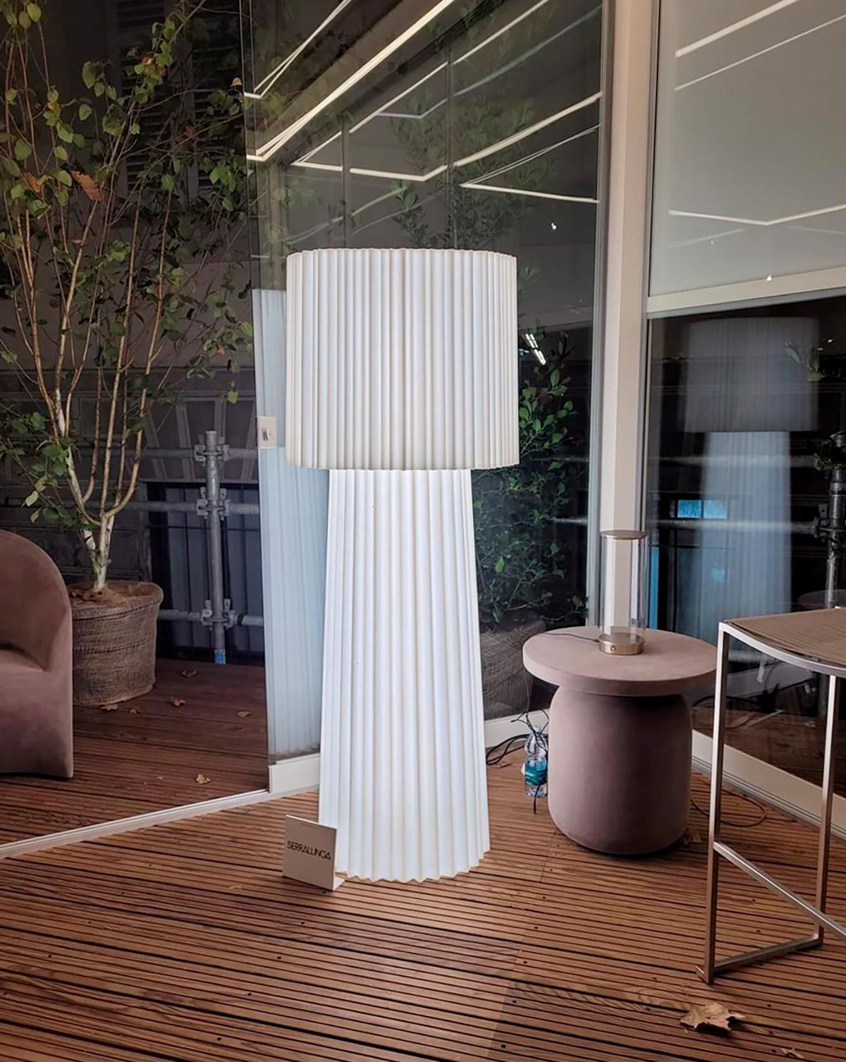 Ruffle lampada da terra by Serralunga Outdoor Design è la lampada da terra di Garth Roberts per Serralunga esprime l'eleganza e la leggerezza del tessuto in una silhouette iconica e contemporanea. La combinazione di texture e luce La lampada da terra Ruffle aggiunge un'illuminazione sensuale a qualsiasi ambiente, sia interno che esterno.