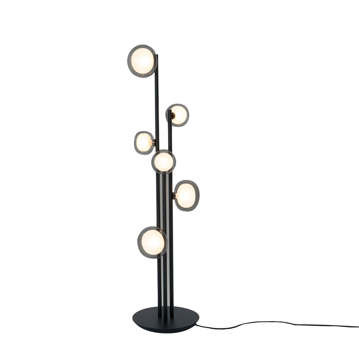 Nabila 552.66 lampada da terra è la lampada da terra sferica a doppia faccia in vetro borosilicato che rende queste lampade disponibili in diverse composizioni e una struttura realizzata in metallo verniciato con polvere epossidica arricchita con dettagli in ottone spazzolato o cromo nero. Ricchezza e sobrietà tutto in un unico elemento.