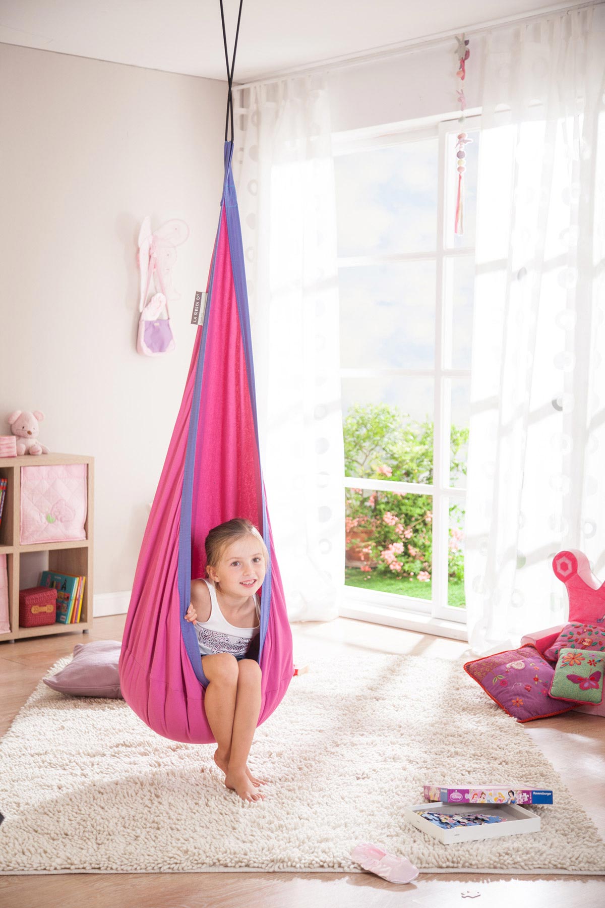 Joki Lilly è la tana pensile in puro cotone proposta nella colorazione del fucsia acceso. Pensata per i più piccoli, può essere collocata a sospensione a soffitto, il suo morbido cuscino alletterà i vostri piccoli a sognare, leggere e dondolare. Il dondolare dolcemente favorisce lo sviluppo del senso dell'equilibrio, ciò influenza positivamente la capacità di concentrazione e il successo nel processo dell'apprendimento nel leggere e nello scrivere. Per questo motivo il nostro nido amaca Joki è consigliato dall'associazione federale tedesca per la postura e l'esercizio fisico (BAG). Joki è adatto per bambini dai 3 ai 9 anni. L'altezza minima di montaggio consigliata è di 2 m. La stoffa in puro cotone è robusta e di facile manutenzione. Il prodotto è certificato dall'associazione per il controllo tecnico tedesco (TÜV) ed è dotato del marchio GS per la sicurezza.