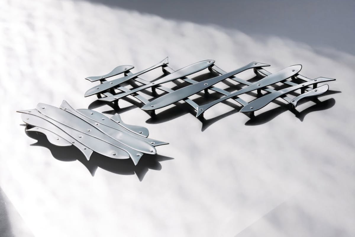 Alessi DUL03 Pescher Sottopentola estensibile in acciaio Inox è il sottopentola di design estensibile in acciaio inossidabile 18/10 lucido. Paolo Lomazzi e Donato D'Urbino, pionieri del design pop nell'arredamento a partire dagli anni '60, si sono cimentati da par loro con la tipologia del sottopentola estensibile.