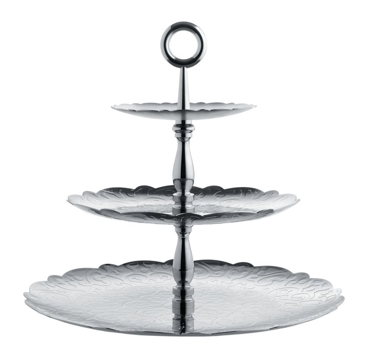 Alessi MW52/3 Alzata a tre elementi in acciaio Inox è la alzatina di design in acciaio inossidabile 18/10 con decoro a rilievo.