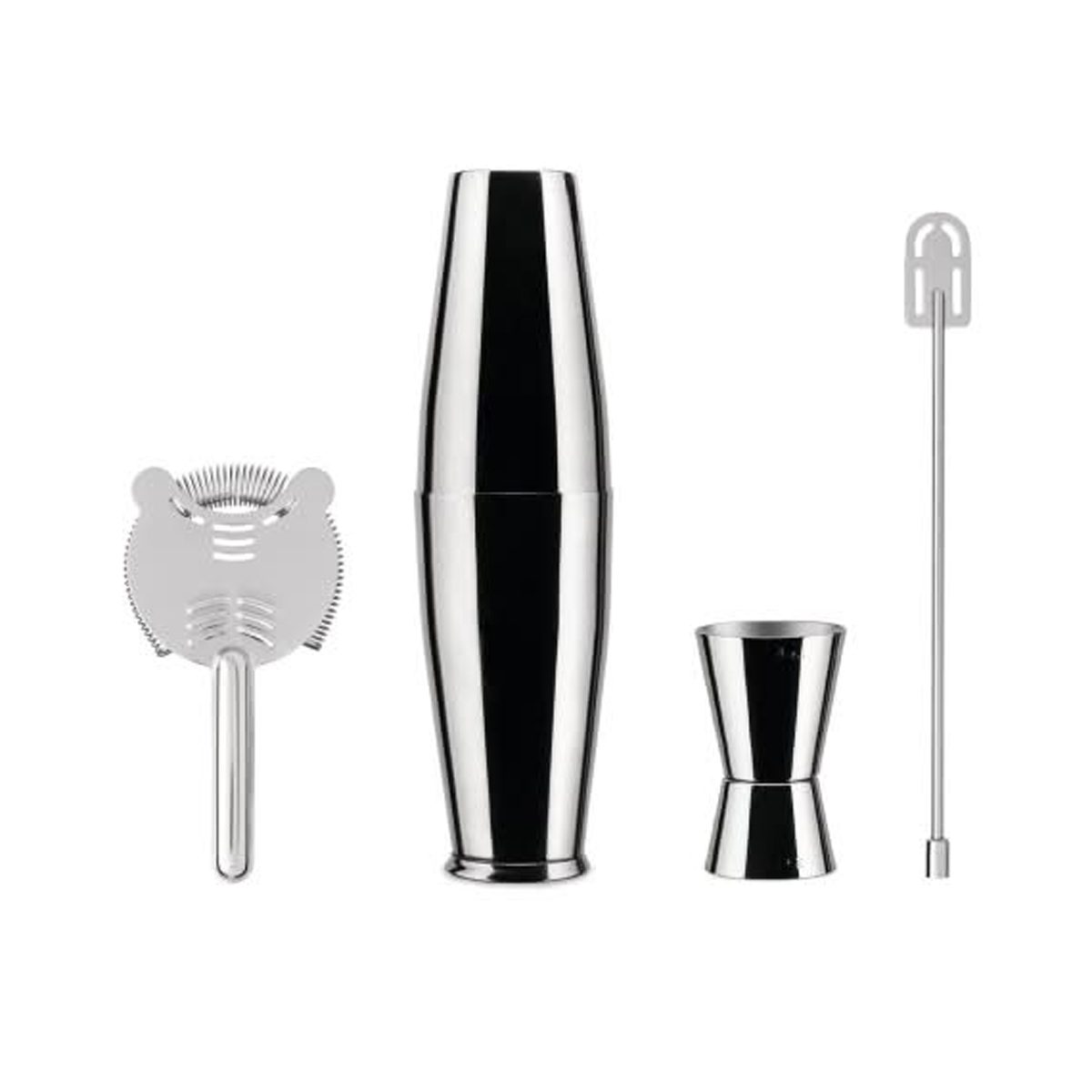 Alessi 5050SET I Lunar Eclipse Set Ettore Sottsass | Set agitatore americano, passino da bar, frullino e misurino per cocktail in acciaio inossidabile 18/10
