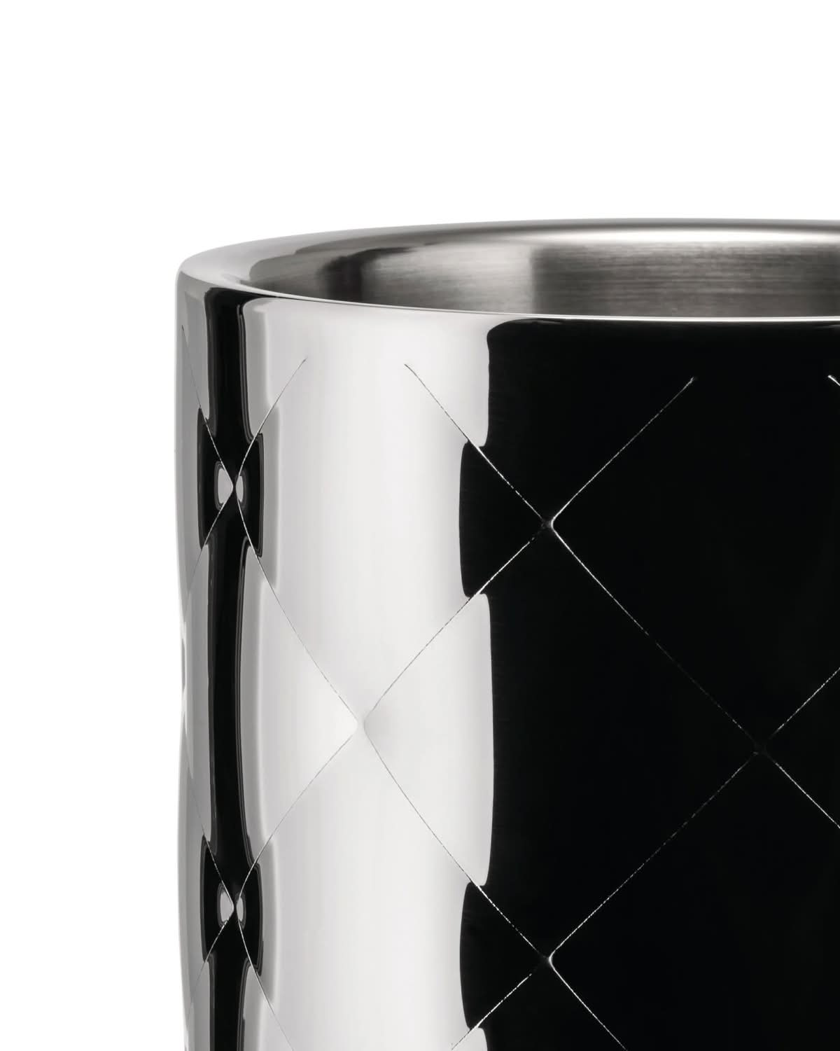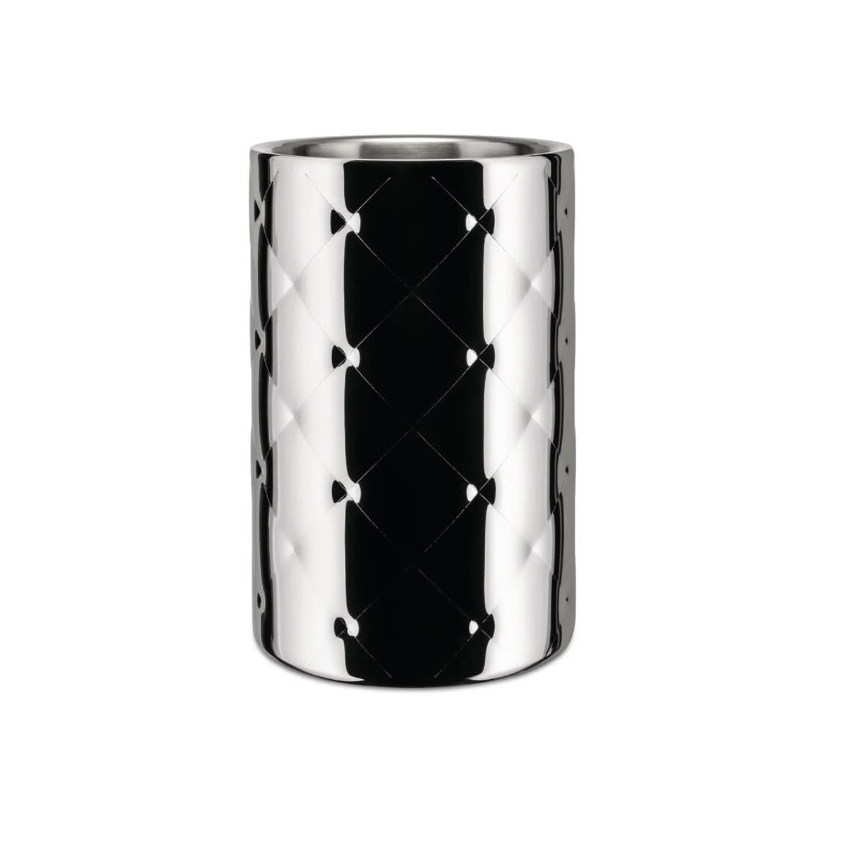 Alessi MSA11 Mateglacé Portabottiglia termoisolante è l'accessorio Br&Wine di design a doppia parete in acciaio inossidabile 18/10 lucido. E' un bell’esempio dell’antica e preziosa lavorazione matelassé sui metalli. Ecco il seguito della serie per bar e vini ideata nel corso degli ultimi anni per il nuovo secolo.
