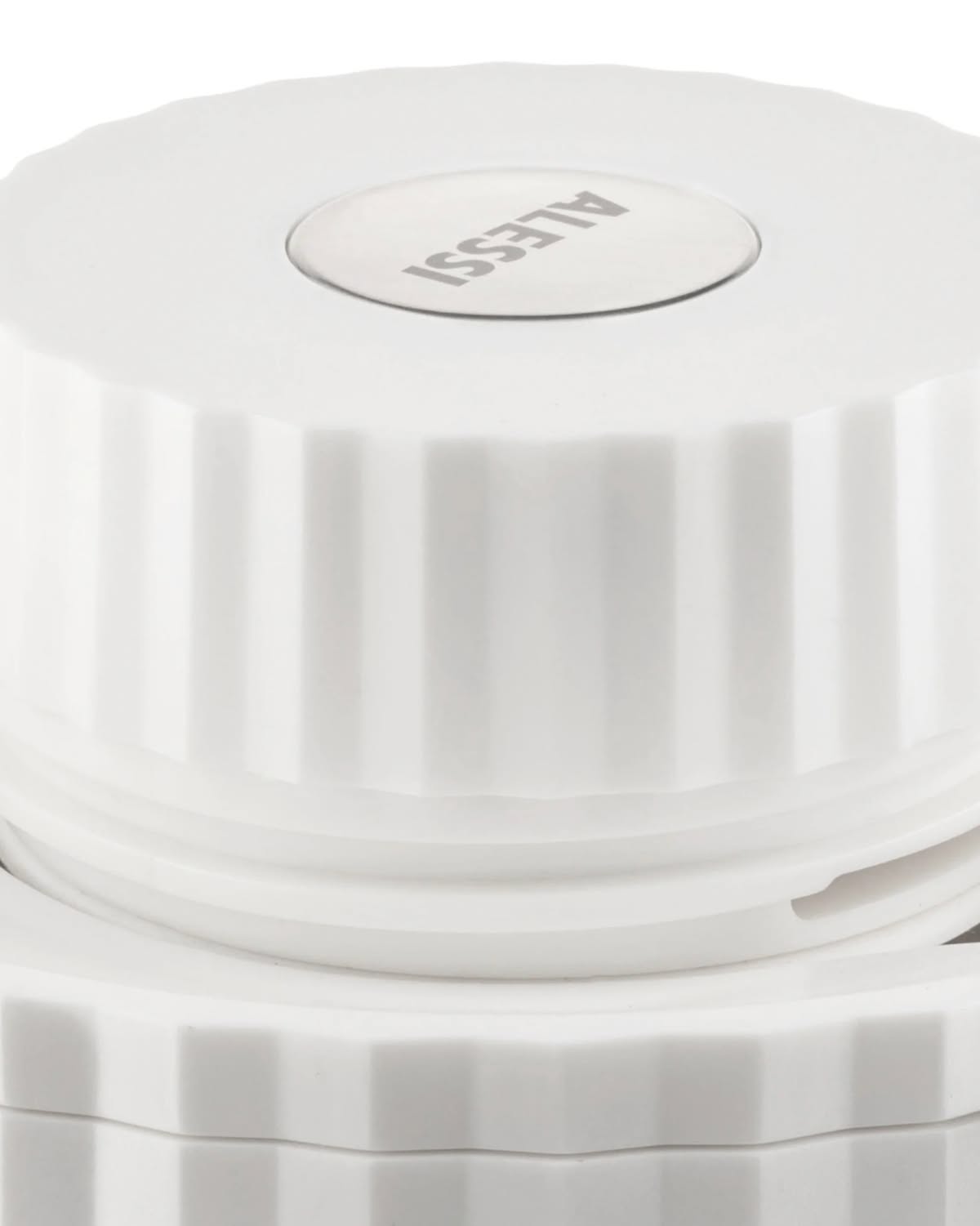Alessi Plissè MDL12 W Caraffa termoisolante Bianco è la caraffa di design per la tavola termoisolante in resina termoplastica. Vetro termico interno a doppia parete. La Caraffa Termica Plissé è un'opera di design di grande raffinatezza che ibrida echi classici a linee contemporanee. Le sue linee geometriche e la composizione meticolosa uniscono l'eccellenza tecnica all'eleganza di un abito su misura. Leggera e facile da usare, questa caraffa termica di design incarna sia la praticità che l'estetica senza tempo, rendendola un pezzo versatile che va oltre le tendenze. Sia che venga esposta come un'opera d'arte o un capo di alta moda, la fusione tra classico e contemporaneo crea un impatto scultoreo impressionante. Perfetta per ogni tipo di tavola, a casa o in ufficio, la Caraffa Termoisolante Plissé garantisce di avere sempre a portata di mano la tua bevanda preferita. Il drappeggio di Plissé veste un nuovo oggetto per la tavola: la caraffa termoisolante pensata da Michele de Lucchi per ampliare la fortunata collezione segue le linee geometriche concise e l’attenta composizione degli altri elementi della serie, sintetizzando in un oggetto esigenze tecniche, alte prestazioni e l’eleganza di un abito di sartoria. DEDICATO A. Agli appassionati delle forme intramontabili, nel design, nell’arte, come nella moda, la collezione Plissé ha un’anima e un aspetto inconfondibile. Questi piccoli elettrodomestici non lasceranno indifferente chi ama circondarsi di oggetti contemporanei le cui radici affondano in immaginari lontani. ELEMENTI. Composta da un corpo con tappo in resina termoplastica e un contenitore interno in vetro termico a doppia parete. Il tappo è provvisto di un tasto in acciaio inossidabile per l’apertura / chiusura dell’erogazione della bevanda. Sul corpo, sopra l’impugnatura, è collocato un bottone a scomparsa che apre la parte superiore della caraffa e permette l’estrazione del contenitore interno. NOTE DI DESIGN. Da sfoggiare. Una composizione che ibrida echi classici a linee contemporanee, in un contrasto dal forte impatto scultoreo. Da esibire come un'opera d’arte o un abito di alta sartoria. Estetica funzionale. Leggera e facile da utilizzare, la caraffa termoisolante Plissé non nasconde la sua grande praticità, integrandola ad una forma iconica e senza tempo. Ovunque al proprio posto. Ideale su qualsiasi tavola, a casa come a lavoro, per avere sempre a portata di mano la vostra bevanda preferita.