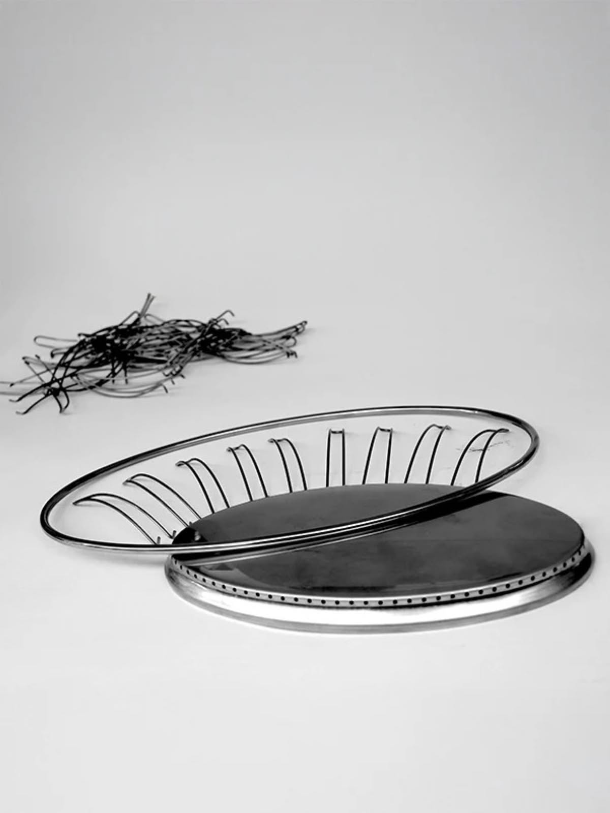 Alessi 826/20 Cestino a filo rotondo in acciaio Inox è il centrotavola di design per la tavola in acciaio inossidabile 18/10. La lavorazione a filo del metallo è una variante tipologica presente da secoli nella storia del casalingo: con questo cestino, nato dalla ricerca tecnologica sul filo di metallo piegato condotta dall’Ufficio Tecnico Alessi nella seconda metà degli anni '40, è iniziata per Alessi una famiglia di contenitori per la tavola e la cucina dall’approccio molto basic e tuttora di grande successo. Il cestino “826”, con le sue forme essenziali, si adatta a qualsiasi ambiente e a ogni utilizzo, sia professionale che domestico. Vero archetipo industriale del casalingo in metallo, i Cestini a filo sono tra i più antichi prodotti della Alessi ancora in produzione. Sono stati progettati dall’U.T.A., sigla che pudicamente cela il nostro ufficio tecnico interno: sono dunque un bell’esempio di opera collettiva del design, sopravvissuta alle molte mode e ai molti mood del mercato. I primi prototipi di questa serie, che si articola in Cestino rotondo, Cestino quadrato, Cestino ovale e Portaagrumi, risalgono alla fine degli anni ’40. Pur essendo interamente prodotti in Italia, il loro successo di pubblico continua imperterrito, nonostante i costi di produzione elevati e le innumerevoli copie in tutto il mondo. Questa nuova dimensione mini del diametro di 15 centimetri, recentemente richiestaci da una linea aerea elvetica, è stata di diritto inclusa nel catalogo. Il cestino 826/15 è realizzato interamente in acciaio inox con filo di acciaio e con una base a doppio fondo. Nella riduzione in scala dal modello superiore si sono dovute diminuire il numero delle forcelle che diversamente sarebbero state troppo ravvicinate. Il processo produttivo invece è identico alla versione di diametro più grande, un processo articolato con caratteristiche di produzione artigianale.