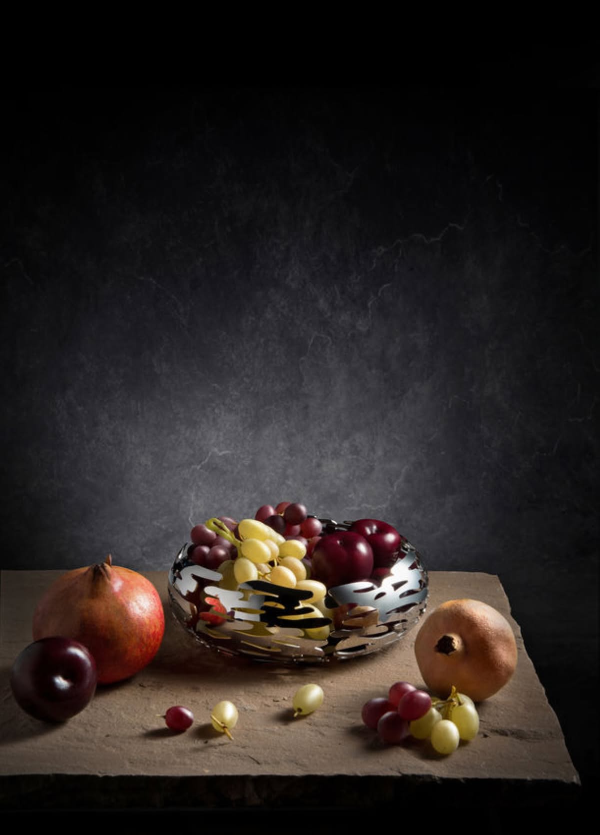 Alessi BM02 Barknest Cestino rotondo in acciaio Inox è il centrotavola di design per la tavola in acciaio inossidabile 18/10. Il cestino Barknest richiama nella forma e nel nome un accogliente nido, le cui pareti arrotondate ne custodiscono il contenuto. Un oggetto dal design espressivo, capace di valorizzare l’ambiente in cui è inserito. Realizzato nello stabilimento dell’azienda a Crusinallo di Omegna, il cestino rotondo della serie “Bark” mostra, come gli altri oggetti di questa famiglia, l’abilità di Alessi nella lavorazione dell’acciaio. Attraverso successivi passaggi di lavorazione, la lastra di metallo viene tagliata e traforata a laser e quindi sagomata in modo da ottenere la forma organica e sinuosa disegnata dagli autori. Un virtuosismo produttivo che permette di creare con l’acciaio un oggetto in cui è impressa una memoria organica e naturale. Le dimensioni contenute rendono “Barknest” perfetto per essere utilizzato in maniera versatile: in cucina, a tavola o sulla scrivania. Un oggetto dal design espressivo, capace di valorizzare l’ambiente in cui è inserito. Un contenitore per custodire ciò che è prezioso.