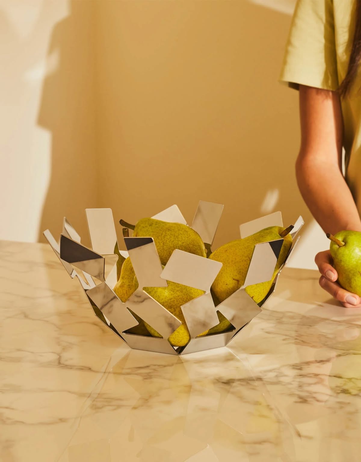 Alessi MT01 La Stanza dello Scirocco Centrotavola è il centrotavola da cucina di design in acciaio inossidabile 18/10. Il centrotavola La Stanza dello Scirocco porta in casa l'atmosfera magica della campagna siciliana. Dall'atmosfera magica di una stanza, piccoli tasselli d'acciaio creano i giochi di luci e ombre del cestino La Stanza dello Scirocco.