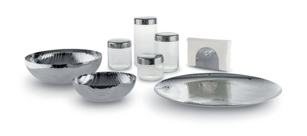 Alessi PU06/29 Veneer Coppa in acciaio Inox è il cestino di design in acciaio inossidabile 18/10 con decoro in rilievo. Realizzata in acciaio, la coppa Veneer è un oggetto ideale per impreziosire la casa. L’elemento decorativo che richiama la venatura del legno rende unica e originale la mise en place.