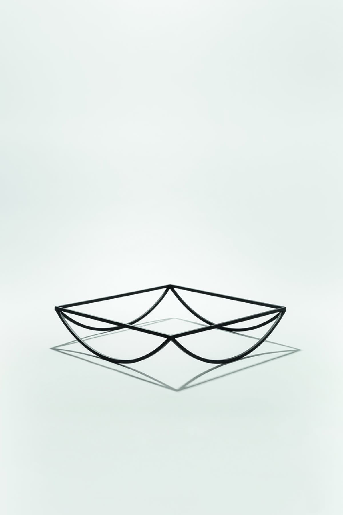 Border No. 2 Contenitore di Ron Gilad per Danese Milano è un contenitore centrotavola portafrutta di design in metallo verniciato a polvere che segnala un territorio come gesto di volontà. Segnalare non è un limite né un confine ma una qualifica che si assegna a un’area neutra alla quale vogliamo assegnare l’azione di contenere e proteggere. Anche questa volta Gilad immagina l’interazione tra un suo progetto, la superficie e lo spazio che lo ospita. Li immagina come una leva, una scena o una spalla per mostrare un pensiero costruito tra logica e assurdo. Quattro semicerchi sostengono un quadrato o un quadrato innalza quattro semicerchi, sono queste le diverse letture di un oggetto che nel ribaltamento non perde la funzione ma offre un’alternativa.