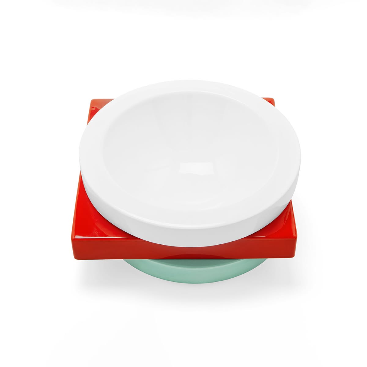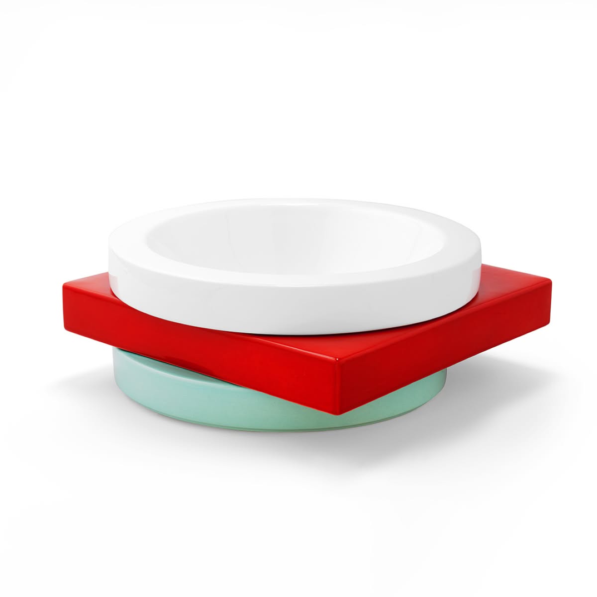 Memphis Milano Broccoli Portafrutta di Marco Zanini è un portafrutta di design in ceramica dipinta a mano. Broccoli è un portafrutta - il cui nome rimanda invece a un ortaggio - disegnato da Marco Zanini in ceramica dipinta a mano. La forma inconsueta di questo oggetto presenta la sovrapposizione sfalsata di tre elementi geometrici: il quadrato rosso posto sulla base circolare azzurra sostiene la ciotola bianca.