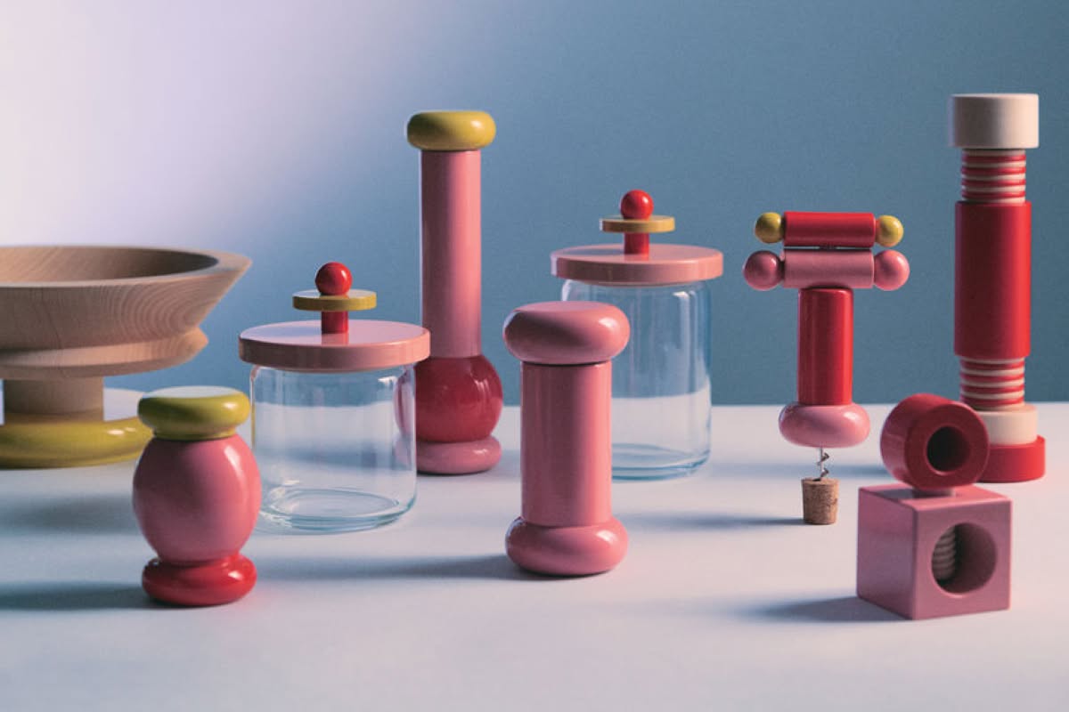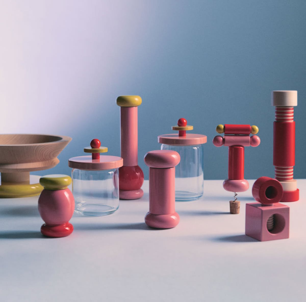 Alessi ES18 2 Macinasale, pepe e spezie in legno di faggio Rosa-Rosso-Giallo Ettore Sottsass | Macinasale, pepe e spezie in legno di faggio Alessi 100 Values Collection