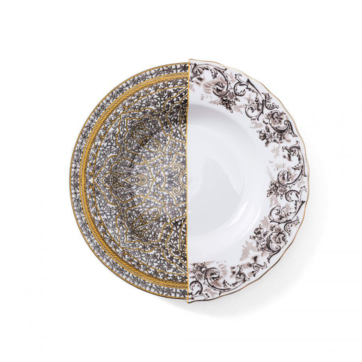 Hybrid Agroha Piatto fondo Seletti by CTRLZAK è il piatto fondo design appartenente alla collezione Hybrid e realizzato in porcellana Bone China. Quando est e ovest si incontrano. Una collezione che riflette sull’antica produzione orientale e occidentale: decorazioni ibride provenienti da un passato complesso che si trasforma in forme contemporanee.