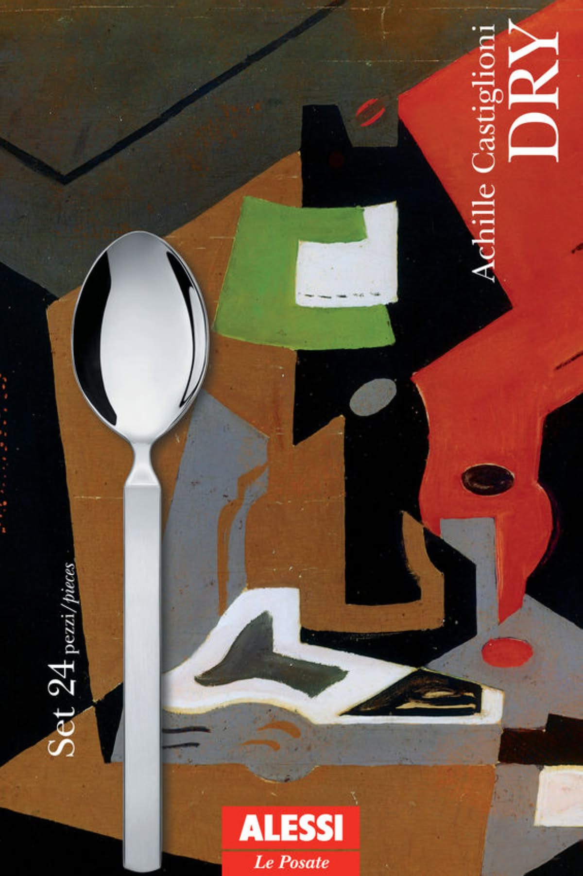 Alessi 4180S5 Dry Servizio di posate in acciaio inox è il servizio di posate di design composto da un cucchiaio da tavola, una forchetta da tavola, un coltello da tavola, una forchetta da frutta, un cucchiaino da tè in acciaio inossidabile 18/10 lucido con manico satinato. Servizio di posate composto da un coltello da tavola in acciaio lucido con manico satinato, un cucchiaino da tè in acciaio lucido con manico satinato, un cucchiaio da tavola in acciaio lucido con manico satinato, un forchetta da frutta in acciaio lucido con manico satinato, un forchetta da tavola in acciaio lucido con manico satinato. Il servizio di posate Dry rappresenta l’esordio di Alessi nella produzione di posate. Nonostante le fosche previsioni iniziali degli addetti ai lavori ha dimostrato come la forza iconica e innovatrice della sua forma, unita a una grande sensorialità nell'uso e a una finitura eccellente siano ben più importanti per il pubblico di quanto facciano credere molti vecchi pregiudizi del mercato.