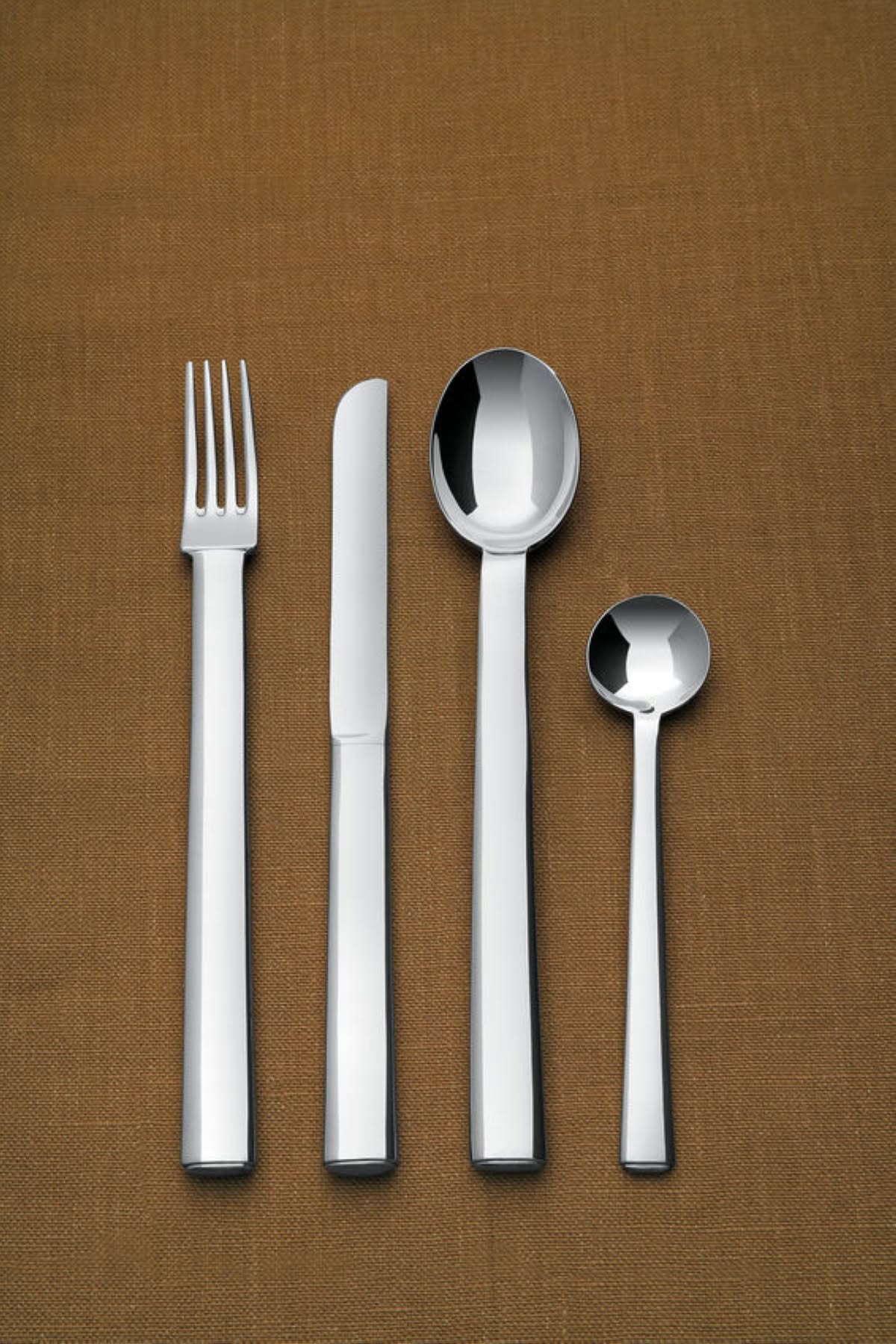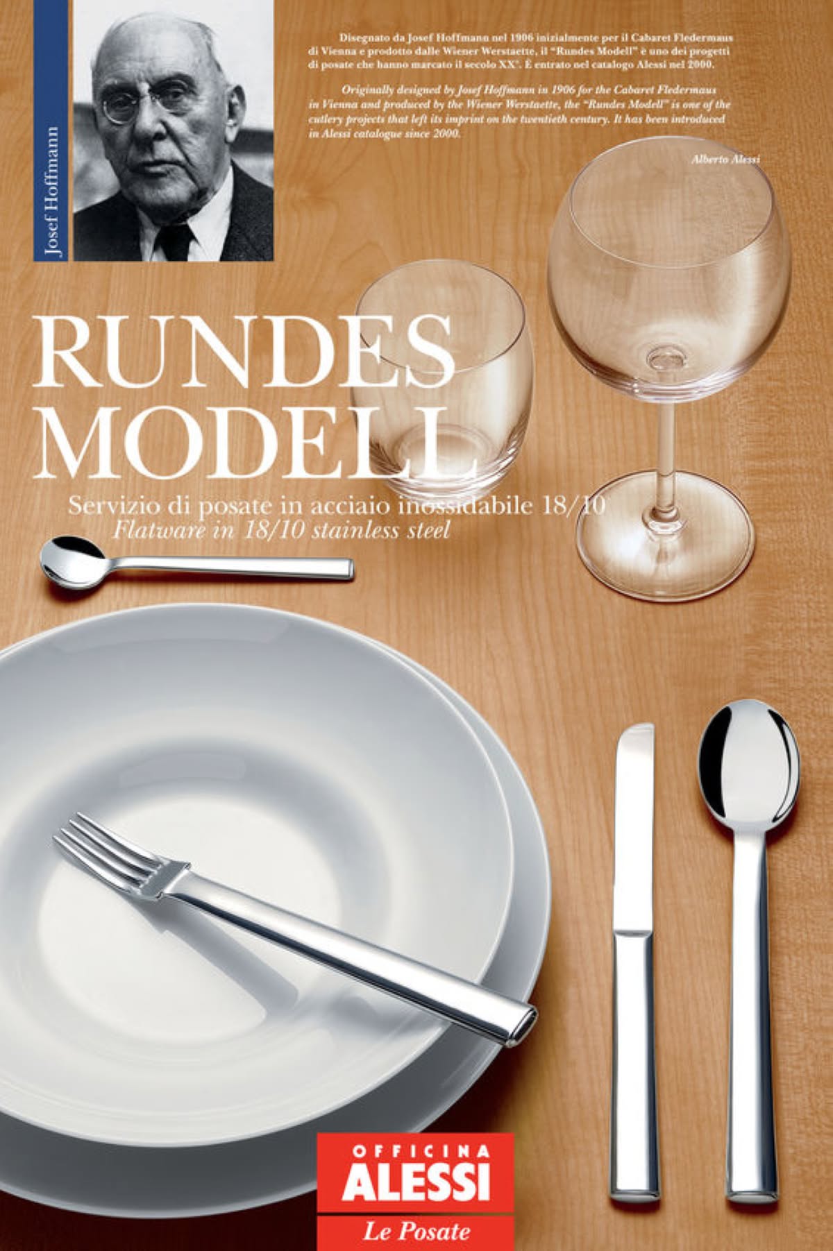 Disegnato inizialmente per il Cabaret Fledermaus di Vienna e prodotto dalle Wiener Werstaette, il “Rundes Modell” è uno dei progetti di posate che hanno marcato il secolo XX. Creato nel 1906 e in produzione Alessi dal 2000, era recentemente uscito di produzione. Sono felice che ci rientri ora, a seguito della richiesta di un cliente a cui non possiamo dire di no: lo chef Alain Ducasse per il rinnovo del suo ristorante Louis XV a Monaco.