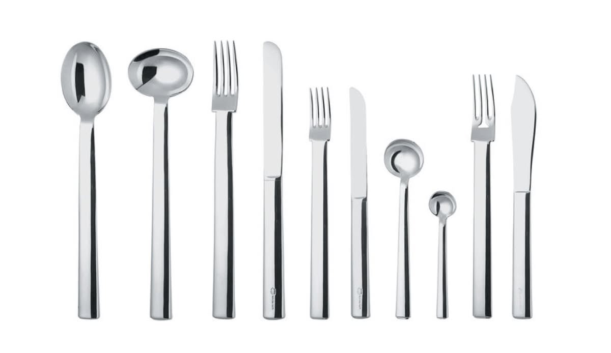 Alessi JH01S24 Rundes Modell Servizio di posate in acciaio inox è il servizio di posate di design composto sei cucchiai da tavola, sei forchette da tavola, sei coltelli da tavola, sei cucchiaini da tè in acciaio inossidabile 18/10. Disegnate da Josef Hoffmann nel 1906, le Posate “Rundes Modell” (1) rispecchiavano pienamente le linee guida della ricerca dei Wiener Werkstätte, di cui l’autore fu uno dei fondatori: funzionalità, praticità, unite a una raffinata lavorazione dei materiali. Se da parte di alcuni contemporanei vi furono dubbi sulla praticità di queste posate – soprattutto la concavità trasversale della coppa del cucchiaio fu un aspetto controverso – questi furono smentiti da quanti effettivamente ne fecero uso. Il pubblico del Cabaret Fledermaus, per esempio, di cui i Wiener Werkstätte curarono l’arredamento, compresa l’apparecchiatura delle tavole. Se si osserva il disegno di posate più recenti è possibile vedere quanto le “Rundes Modell” siano state fonte di ispirazione per molti designer che si sono confrontati con questo tema progettuale. Nel 2000 Alessi ha presentato una riedizione in acciaio inossidabile 18/10 di questo storico servizio. Uscito di produzione, Alessi ripropone nel 2015 una versione con un assortimento ridotto rispetto a quello originale: Forchetta, Coltello e Cucchiaio da tavola (2); Forchetta e Coltello da frutta (3); Cucchiaini da tè e da moka (4); Forchetta e Coltello da pesce (5). Il Cucchiaio da tavola è proposto in due versioni: quella originale disegnata da Hoffmann con la coppa trasversale (2A) e quella con la coppa coassiale al manico (2B), realizzata da Alessi in occasione della prima riedizione del 2000 con la consulenza di Elisabeth Schmuttermeier, curatrice del MAK di Vienna (6), il museo che detiene l’archivio dei Wiener Werkstätte.