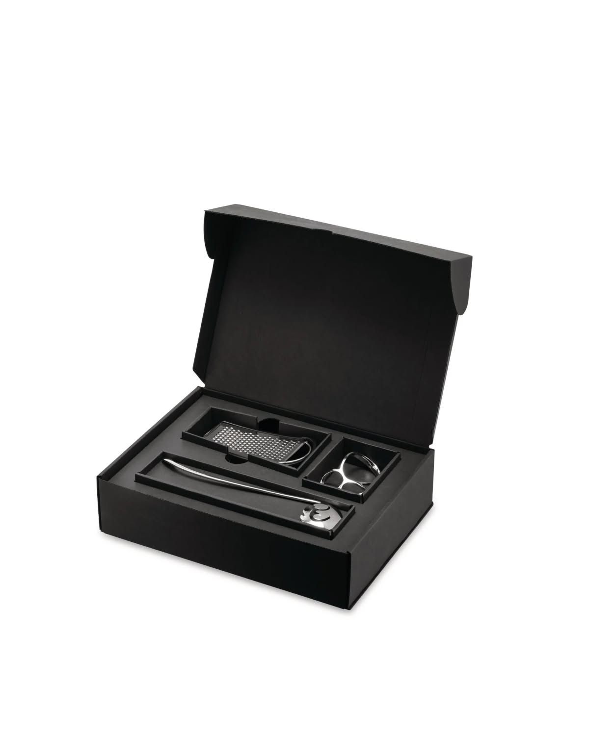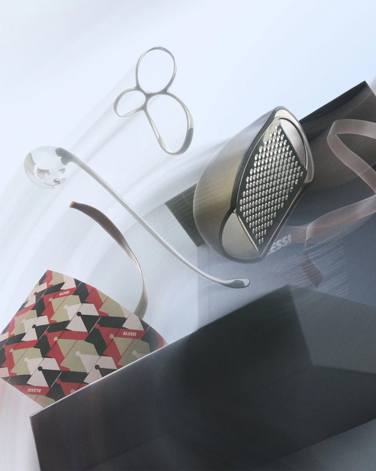“L’atto del regalo è sempre stato un gesto importante e pieno di significato nella storia dell’uomo, circondato da rituali misteriosi e complessi, ma questi rituali nel mondo contemporaneo sono diventati sempre più sofisticati. Sappiamo bene come molti dei nostri prodotti abbiano nel regalo il loro destino di acquisto più frequente. Lo scopo del progetto delle confezioni da regalo è per l’appunto enfatizzare tale valenza dei nostri prodotti, la loro identità ‘da regalo’. Gli Alessi Gift Set sono eleganti scatole che presentano gli oggetti secondo temi funzionali (il ‘caffè’, i ‘cocktail’, il ‘servizio dei vini’ ecc.). Dotate di un interno, consentono una bella esposizione in vetrina ma allo stesso tempo sono riutilizzabili in casa come contenitori.” Alberto Alessi