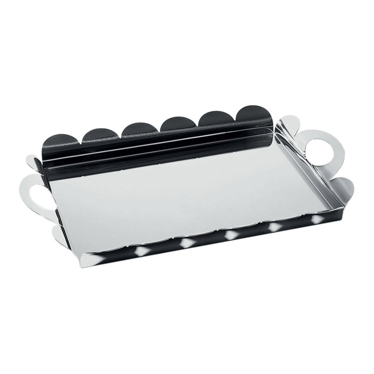 Alessi AM14 Recinto Vassoio rettangolare in acciaio Inox Alessandro Mendini | Vassoio rettangolare con bordo smerlato e manici in acciaio inossidabile 18/10 lucido
