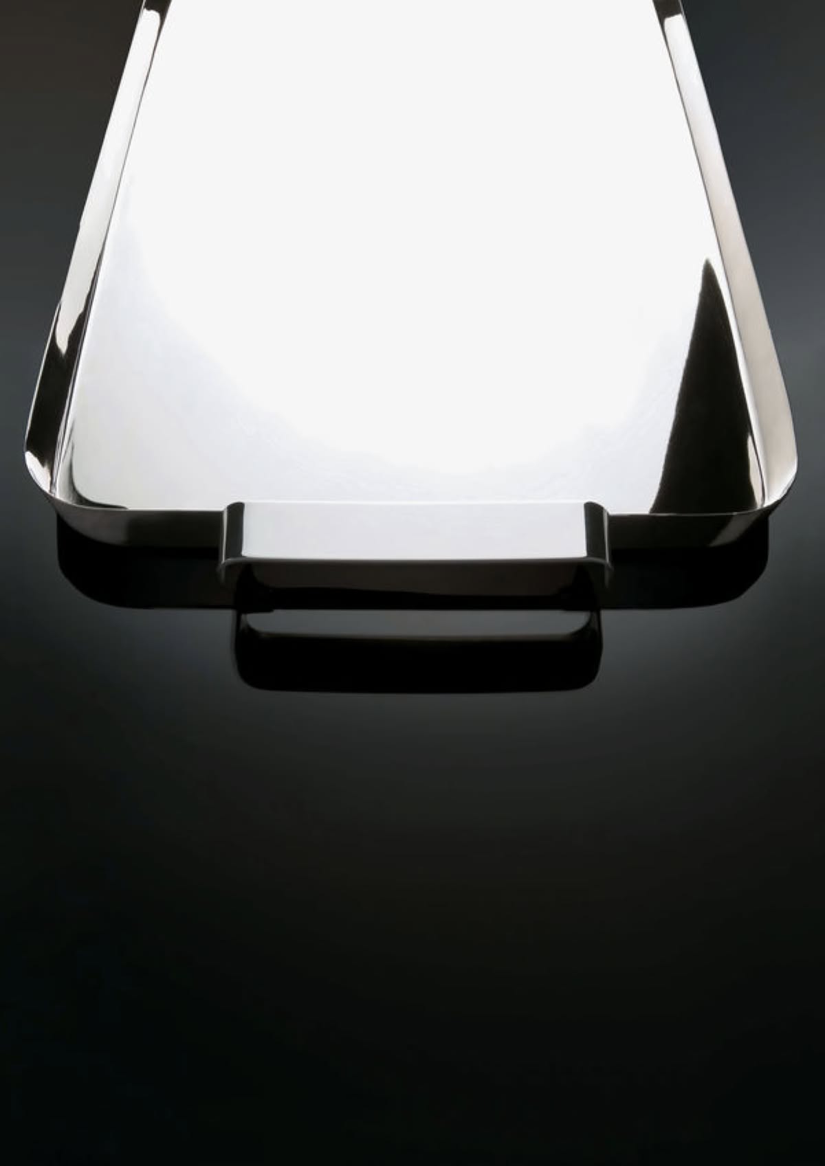 Alessi KL09 Tau Vassoio rettangolare in acciaio Inox è il vassoio di design con manici in acciaio inossidabile 18/10 lucido. Kristiina Lassus porta nel catalogo Alessi una sua personale e nordica interpretazione della Nuova Semplicità.