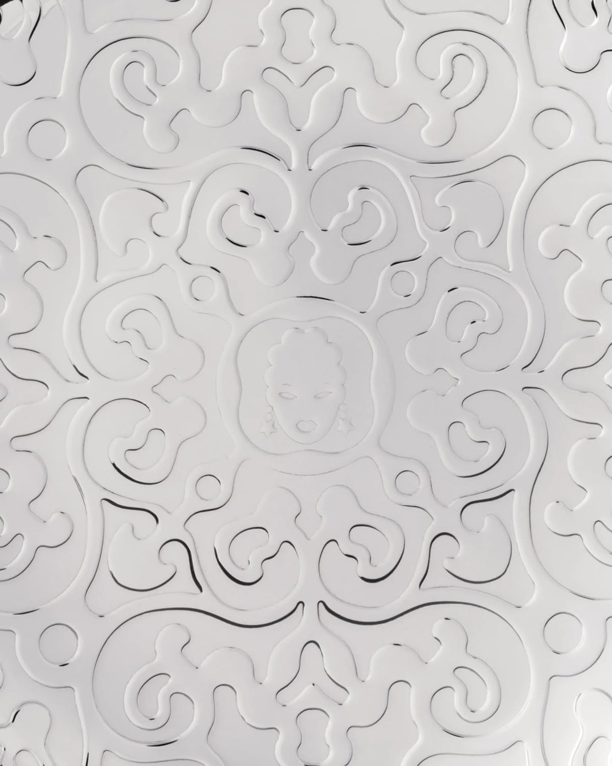 Alessi MW07 Dressed Vassoio rotondo in acciaio Inox è il vassoio di design in acciaio inossidabile 18/10 lucido con decoro a rilievo. Nel vassoio rotondo Dressed la decorazione diventa un vestito prezioso che lo trasforma in un gioiello per la tavola. Il Servizio da tavola Dressed è disegnato da Marcel Wanders. La regola classica imporrebbe che la decorazione fosse negli spazi più importanti e più in vista degli oggetti, Wanders invece la applica in spazi defilati, un po’ nascosti, a volte addirittura in spazi normalmente non visibili, tanto che potremmo definirla una decorazione introversa. Lo stesso nome della serie, Dressed, indica una decorazione concepita come un bel vestito che serve a far risaltare il contenuto e non deve mai avere il sopravvento. La serie Dressed è completata da Posate, Bicchieri, Sottopiatto, Servizio tè e caffè e Vassoio, Sottobottiglia e Sottobicchiere. Marcel Wanders è uno dei rari autori che ha saputo realmente innovare utilizzando la decorazione. Il suo approccio alla decorazione consiste nel costruire un particolare rapporto tra le parti decorate e l’oggetto. La regola classica imporrebbe che la decorazione fosse dedicata agli spazi più importanti e più in vista degli oggetti, Wanders invece la applica in spazi defilati, un po’ nascosti, a volte addirittura in spazi normalmente non visibili, tanto che potremmo definirla una decorazione introversa. Lo stesso nome della serie, “Dressed”, indica una decorazione concepita come un bel vestito che serve a far risaltare il contenuto e non deve mai avere il sopravvento. A questa impostazione fanno eccezione questi Vassoi realizzati per stampaggio in acciaio inossidabile 18/10, che sono quasi totalmente decorati per stampaggio a rilievo, sopra e sotto, con il tema decorativo della serie. Inoltre il disegno del decoro è stato applicato in scala maggiore per adattarlo meglio alle maggiori dimensioni dei Vassoi. I Vassoi sono proposti nelle dimensioni quadrata di cm 34x34, rettangolare di cm 45x34 e rettangolare lunga di cm 62x20. Ai tre Vassoi rettangolari si aggiungono due varianti di colore del Vassoio rotondo, già presentato nel 2010 in acciaio inossidabile 18/10, realizzate in acciaio colorato con vernici epossidiche nei colori nero e bianco. Il packaging dei Vassoi è opera dello stesso autore.
